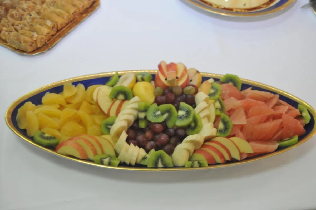 درج أهل السودان الأثرياء فيهم والفقراء على إخراج صينية الإفطار للشارع العام، وهنا تتبارى الأسر في صينية الإفطار المكونة من مشروب الحلو مر، وقمرالدين، وعصير الليمون بالنعناع وأطباق اللقمة بضم اللام، وملاح النعيمية المقلية وكلاهما يصنعان من اللحم المفروم والبصل المجفف والزبادي، إضافة لطبق الفول والطعمية الفلافل وسلطة الزبادي بالخيار وصحن البليلة بالتمور ولا يخلو البيت السوداني من تقديم صحن الزلابية اللقيمات أو الكنافة عقب وجبة الإفطار.