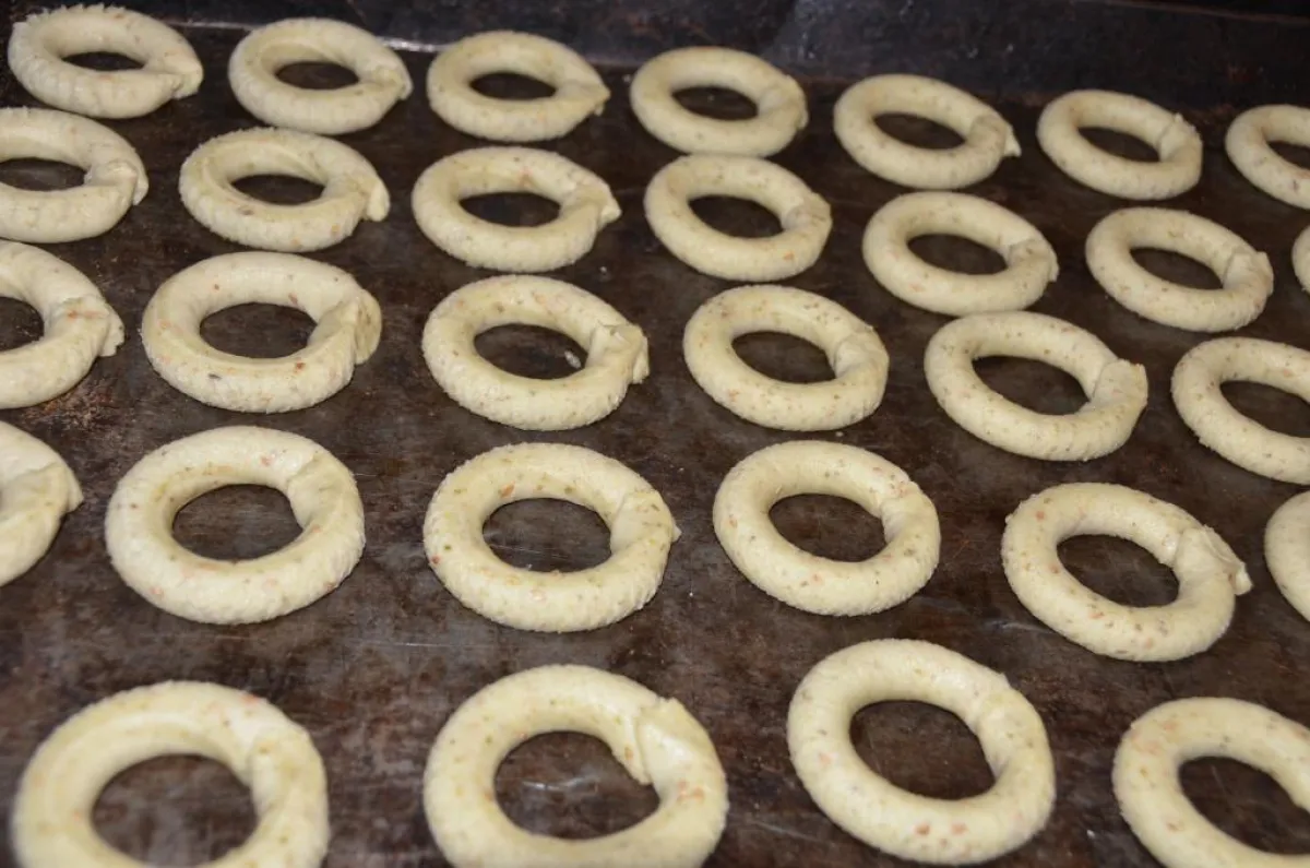 يعد الكعك من مزيج البيض والدقيق وحبات اليانسون وماء الزهر والسمسم وهو حلوى لكل المناسبات.