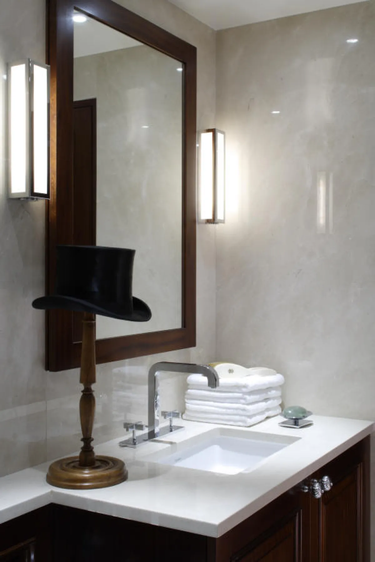 3. لتحقيق جوٍّ من الألفة في الحمّام، يُمكن تثبيت أحد الأغراض الخاصَّة بالمالكة في زاوية بارزة، وبصورة مرحة.