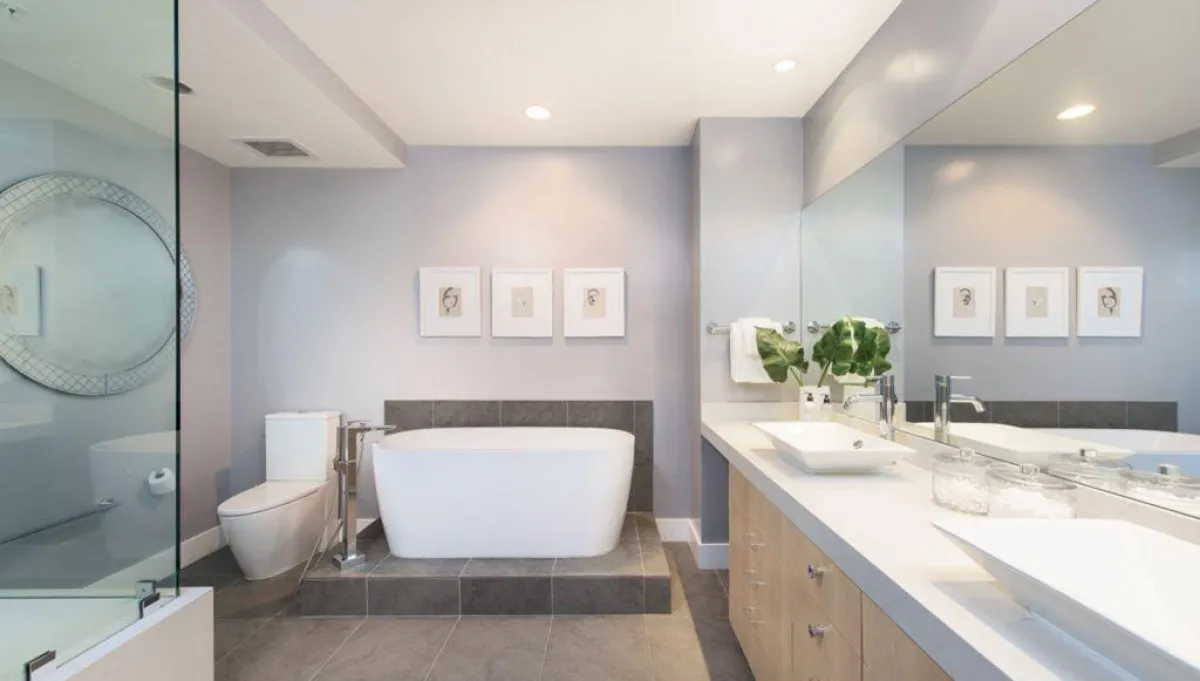 في المطبخ الرحب، يطغى الرمادي الفاتح، على خزائن الخشب ذات القشرة البارزة. وتتوسّط المساحة "جزيرة" مزوّدة بأربعة دواليب.أمّا غرفة النوم الرئيسة فتشرف على الحديقة. وتزيّن ملامح عصرية أنيقة الحمّام الرئيس، حيث الرخام يطغى على الأرضيّة وحوض الاستحمام. وتبدو ألواح من الزجاج السميك الفاصل، ما بين مساحة الـ"دش" وتلك المحيطة بها.