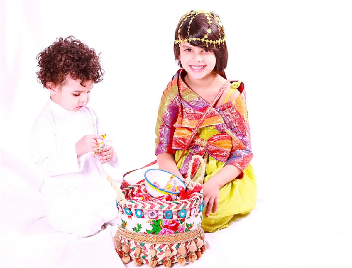 يعمد الأطفال إلى لبس الملابس الشعبية، فيلبس الأولاد الثوب والصدرية الشعبية فوقه، بالاضافة إلى النعال الشعبية، أما البنات فيلبسن الدراعات والبخنق، وهي قماش بألوان مختلفة ومطرزة مع الترتر الذي يُوضع على الرأس، حاملين حول أعناقهم أكياساً قماشية أو سلالاً من الخوص، ويرددون الأهازيج والأناشيد الشعبية، فيبدأون بالمرور على البيوت لتجميع المكسرات والحلوى من أهل الأحياء الشعبية، وذلك بعد إفطارهم عند أذان المغرب.