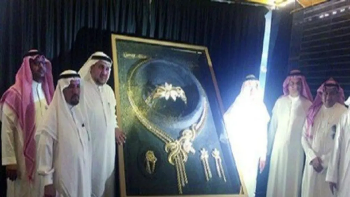 وقال محمد العطاس، الذي أشرف على معرض المجوهرات: تم تصميم أكبر عقد في العالم، بمشاركة أنامل شابات سعوديات، شاركن في صناعته مع أكثر من 35 صائغاً، والذي يزن 33.333 كيلو ذهب عيار 21، وتدخل به قطع من الألماس، مضيفاً: إن تصنيعه استغرق 385 يوم عمل، وهو بذلك دخل موسوعة "غينيس" للأرقام القياسية، وذلك وفقاً لصحيفة "الجزيرة".