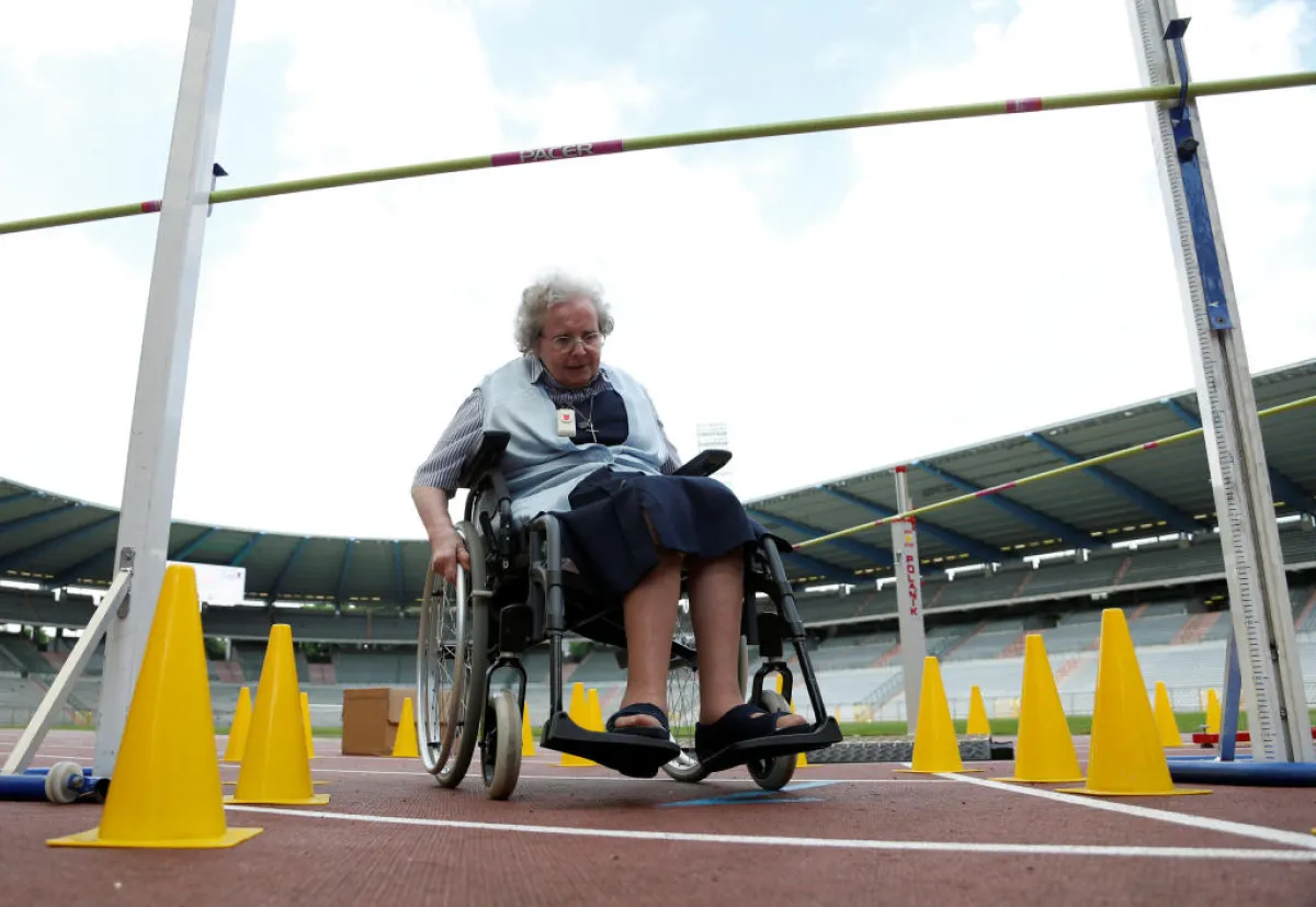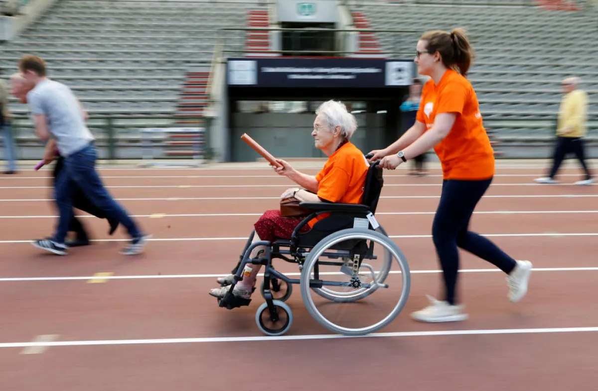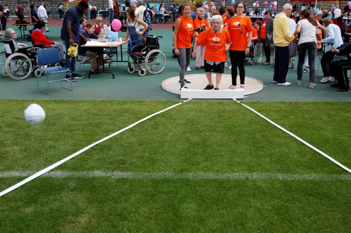 وشارك أكثر من 130 شخصاً من نزلاء دور المسنين في أنشطة تراوحت بين رمي كرة من الصوف ومسابقة في الموسيقى والتتابع على مقاعد متحركة أربع مرات لمسافة 255 متراً.