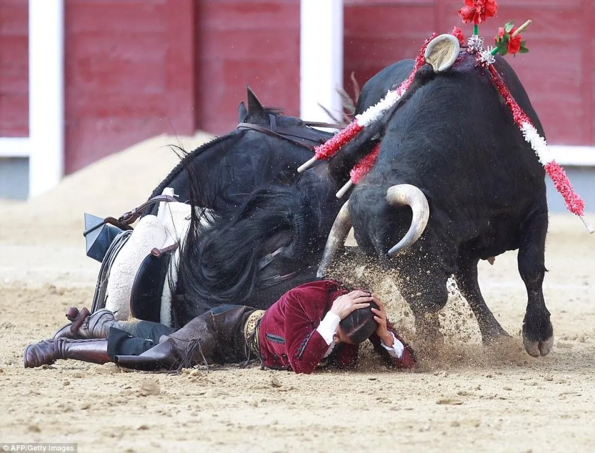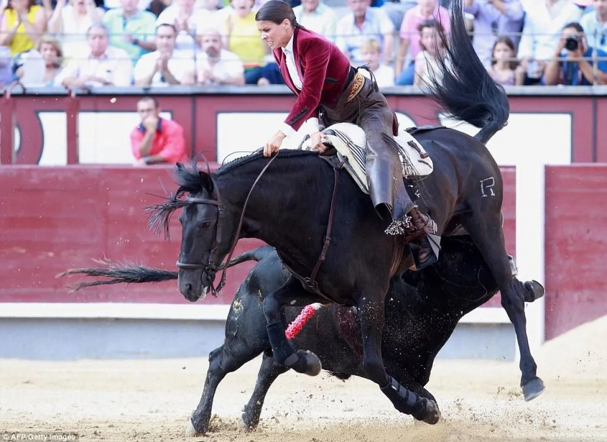 ووفقًا للتقارير، أقدمت مصارعة الريغونيدورا (وهي مصارعة الثيران على ظهر الخيل) بعد أن طرحها الثور الشرس مع جوادها أرضًا في مشهد مرعب نجت فيه المصارعة المثيرة للجدل من الموت المحقق، بعد أن كاد الثور يطعنها بقرنيه، إثر طعنه بما لا يقل عن ثلاثة رماح.