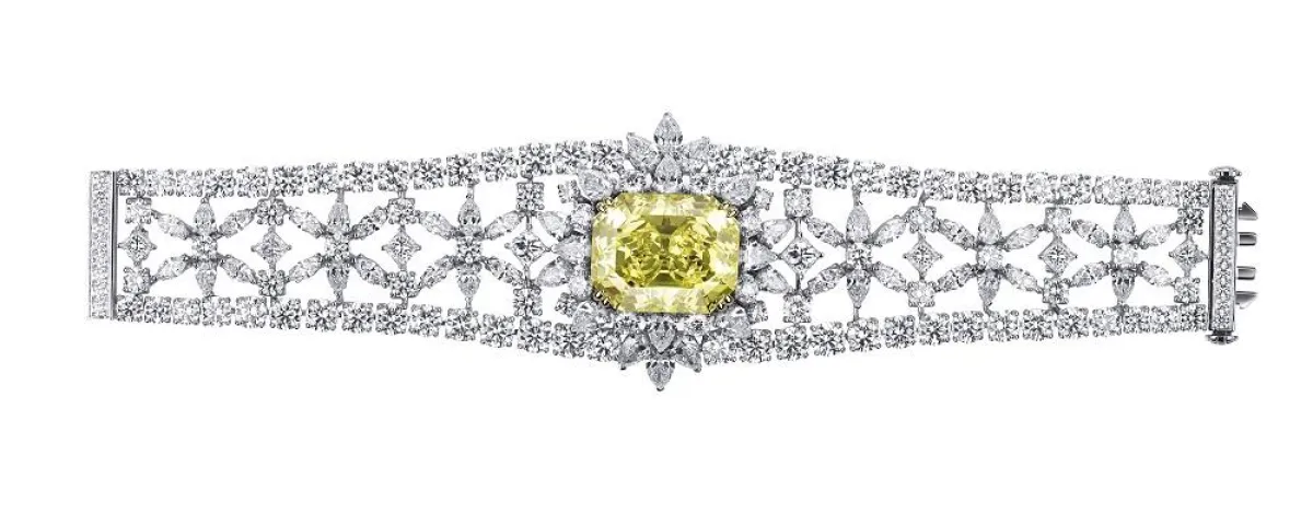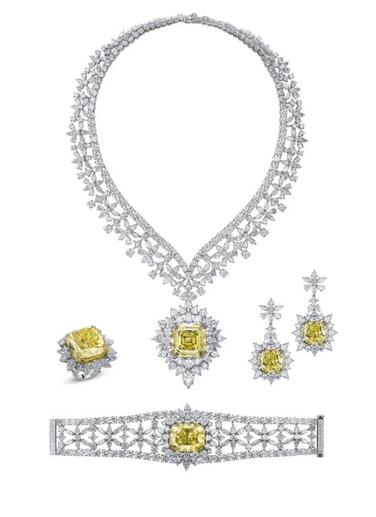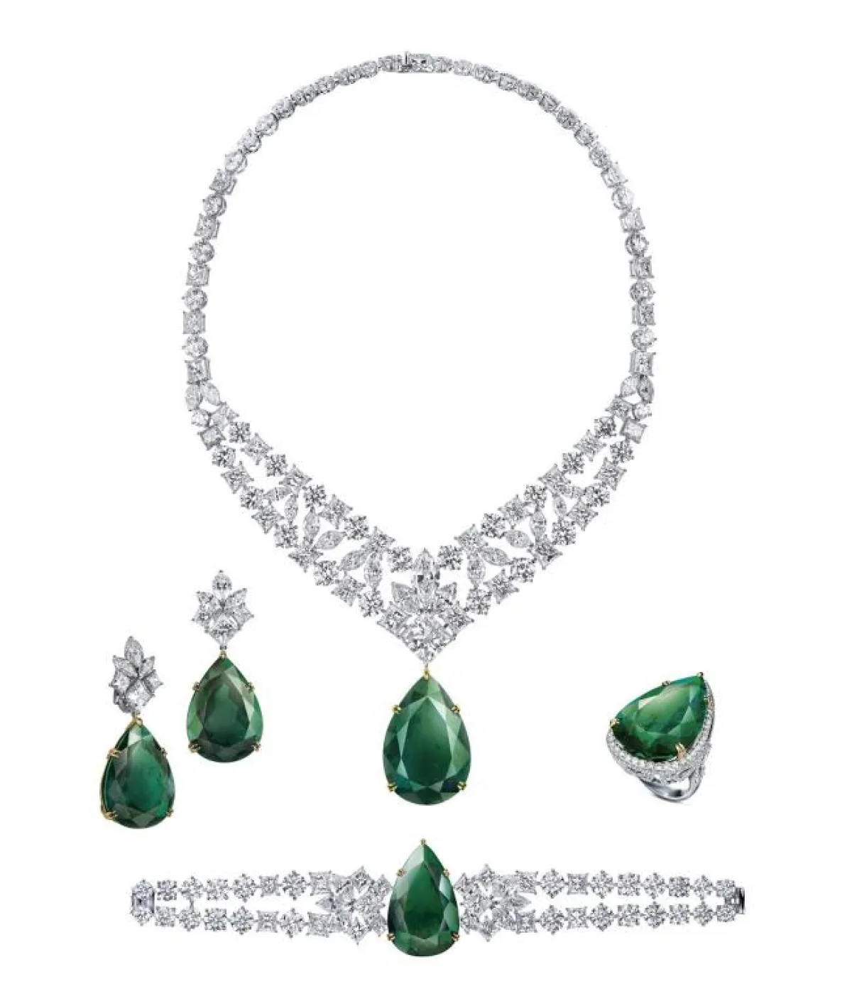 وتجمع دار معوّض، منذ أكثر من قرن، أجود أنواع الأحجار الكريمة من كافة أنحاء العالم، وتصمم مجموعاتها الخاصة من المجوهرات الباهرة، وتصنّعها في معاملها، ومن أبرز ابتكارات معوّض التي تعكس هذا التاريخ العريق طقم "ديفاين موزو بيرز" الذي يأخذنا إلى قلب كولومبيا، حيث يتكون من أفخر أنواع أحجار الزمرد في العالم. إذ يُبهر الطقمُ الأنظارَ ببريق أخضر زاهٍ ينبثق عن خمسة أحجار زمرد كولومبية مقطوعة على شكل الكمثرى. أمّا أحدث الإضافات إلى روائع معوّض وأثمنها على الإطلاق فهو طقم "لو سوليه" (الشمس) المرصع بأجود أنواع أحجار الماس الأبيض والأصفر وأندرها.