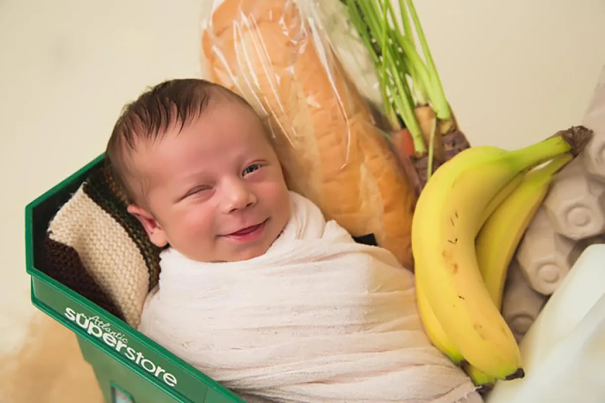 وافقت والدة طفل على إقامة جلسة تصوير خاصة لطفلها، "فريدة وطريفة" حيث تقوم فكرتها على ارتباطها بسلة التسوق في بقالة تجارية رغم قرب ولادتها!