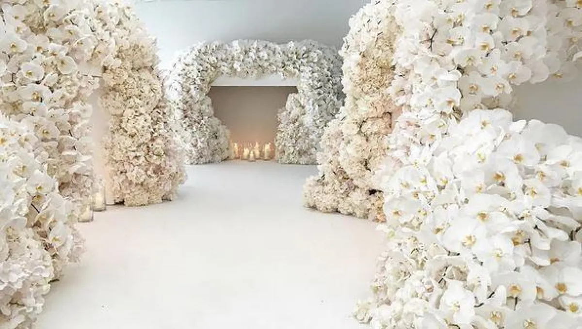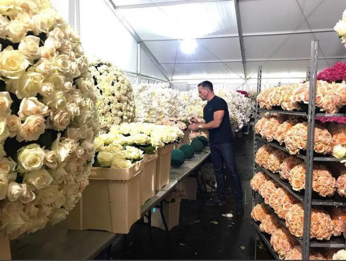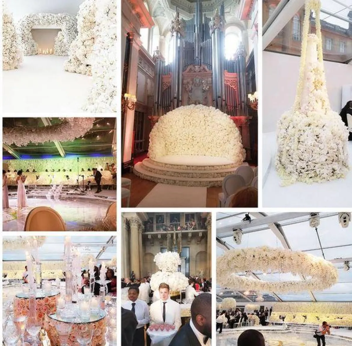 *زيّن فريق مؤلف من 30 شخصًا مكان الزفاف، بأكثر من مليون وردة أوركيدي، وبلغت تكلفتها وحدها أكثر من 500 الف دولار أمريكي.