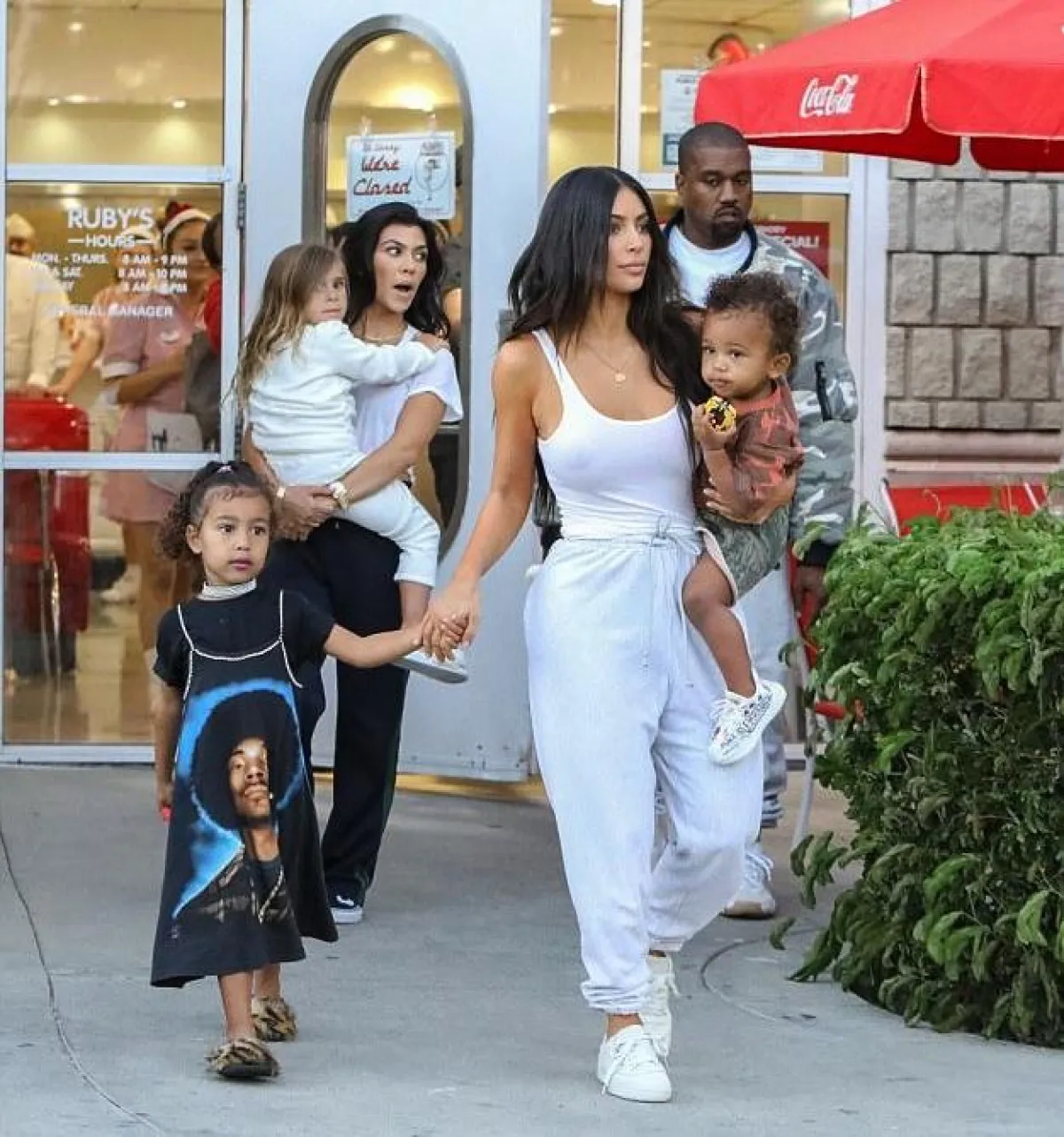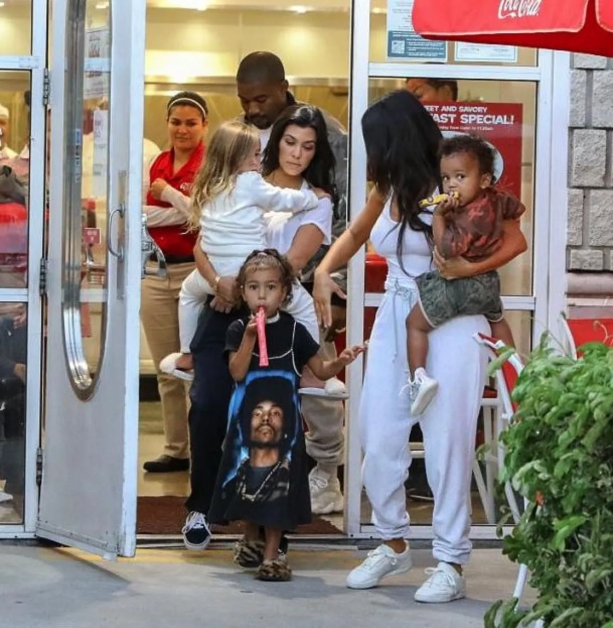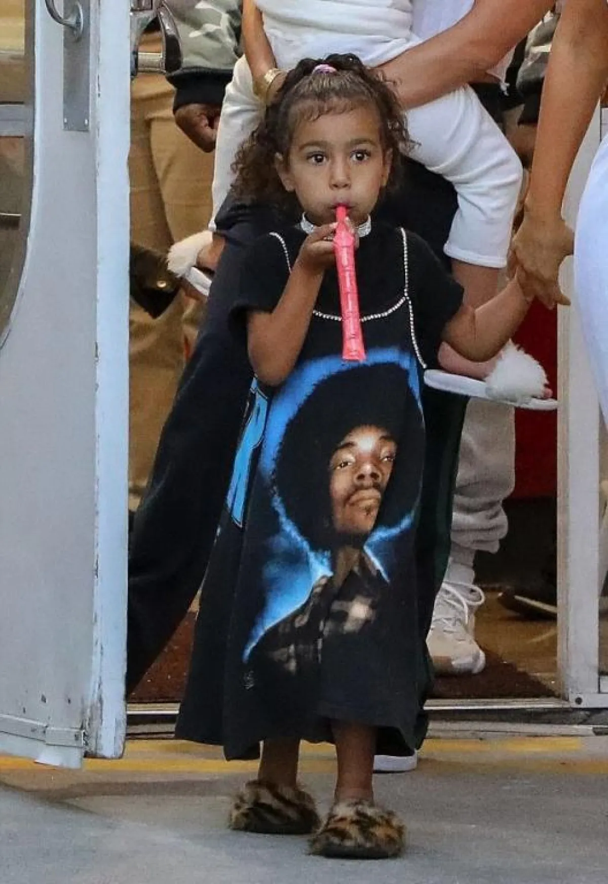 منذ ولادة "نورث ويست" North West ووالدتها "كيم كارداشيان" Kim Kardashian تحاول أن تصنع منها فاشينيستا صغيرة، وبالفعل فقد رصدنا لها أو لهما معاً اطلالات مميزة ومبتكرة، غير أن يوم أمس واحتفالاً بعيد ميلاد "نورث ويست" North West الرابع، شاهدنا العائة مجتمعة في أحد مطاعم الوجبات السريعة في مدينة لوس أنجلوس وقد اختارت "كيم" Kim لابنتها "نورث" North الصغيرة اطلالة كارثية لم تناسب سنها أبداً، بل شوّهت براءتها! وهي عبارة عن فستان ماكسي عليه صورة رجل أفريقي شعره منفوش، نسقته مع صندل من الفرو بنقشة جلد النمر، أما لنفسها فقد اختارت سروالاً رياضياً من القطن مع توب بيضاء.