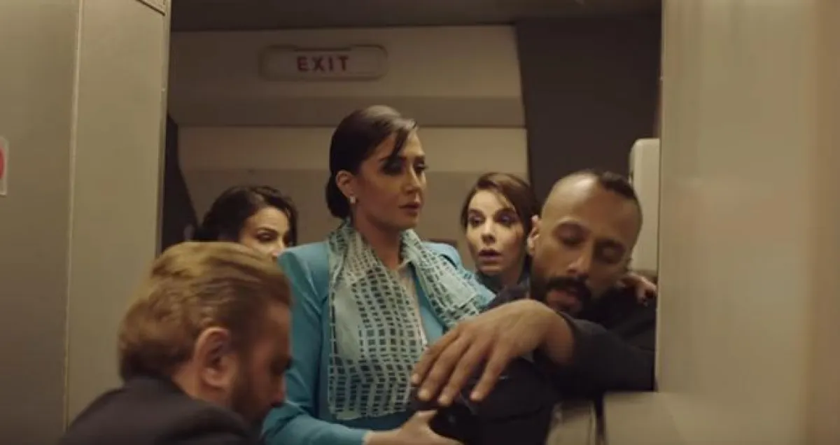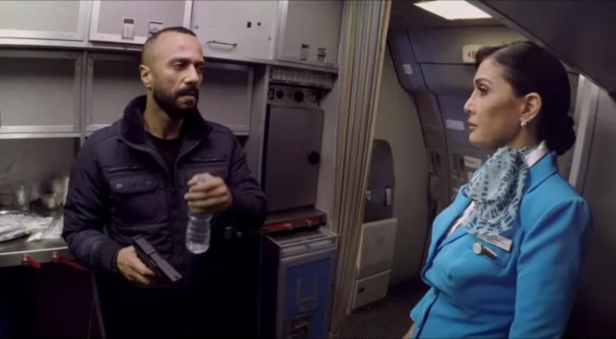 6- وشهد أيضاً مسلسل "أرض جو" موقفاً صادماً بحق المضيفات أيضاً عندما تعاطفت المضيفة سلمى بسهولة مع امرأة عجوز رفض أمن المطار تمرير كمية مهدئات معها،فطلبت منها أن تدخلهم معها في الطائرة،واستجابت سلمى ،وأخذتها منها دون أن ترى وصفة طبية بها،ودون أن يخامرها الشك بأنها قد تكون مخدرات مهربة،وتستخدم بعضها لتخدير شقيقها ياسين الذي أخذ مسدسه،واختطف الطائرة بطاقهما وركابها طالباً من الطيار التوجه إلى اسطنبول تحت تهديد السلاح وقتل الركاب واحداً تلو الآخر عبر حقن سلمى قاروة ماء بلاستيكية بالمهدىء الذي خدره تماماً لساعات ،وتقديمه لشقيقها العطش،ومعروف أن قانون الطيران المدني يمنع المضيفات من نقل المحظورات والمهدئات من قبل المضيفات لأي أحد كان حتى لأنفسهم إلى أن هربوه بذكاء عبر وضعه في قاروة دواء شخصية لهم.