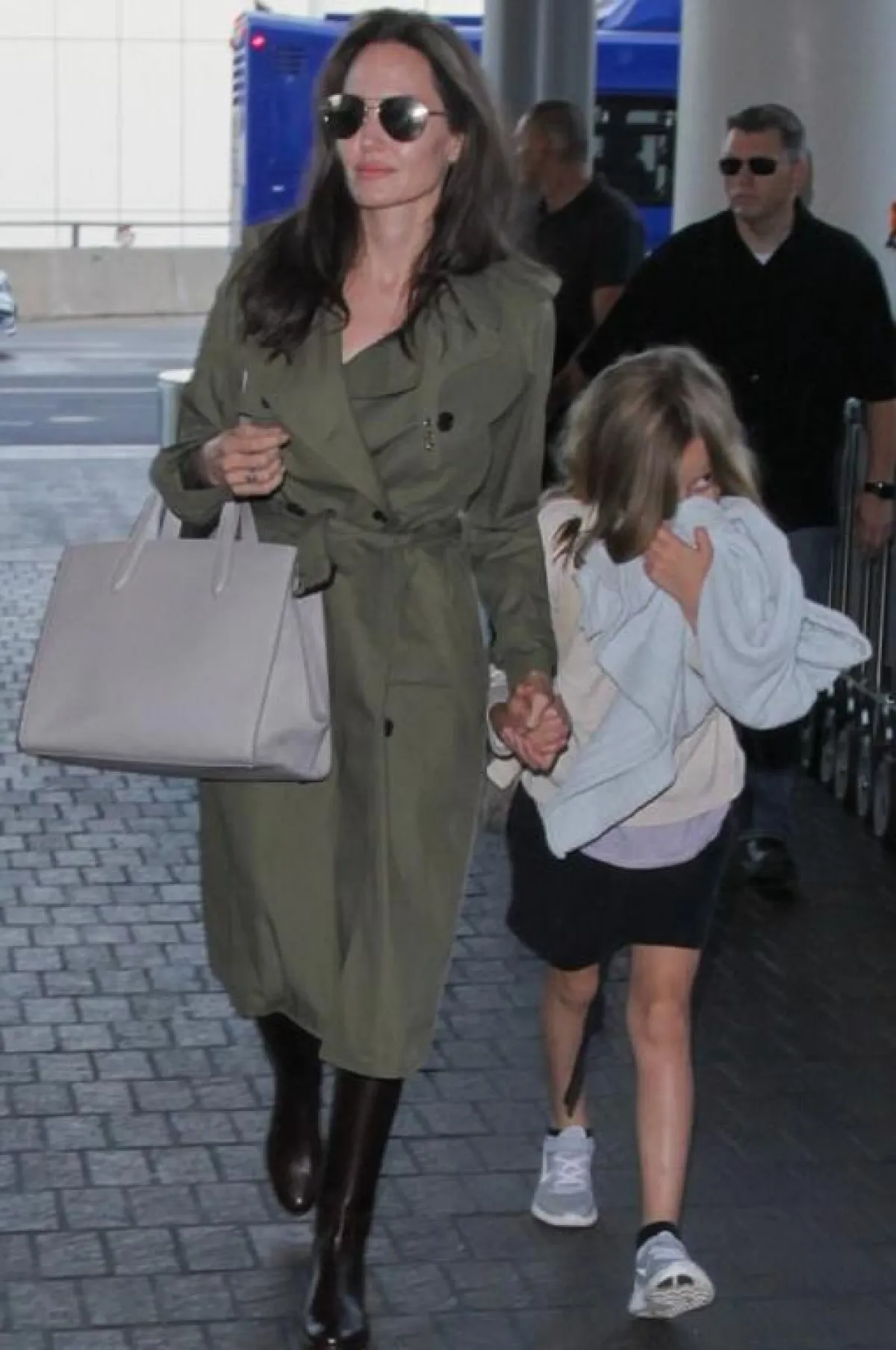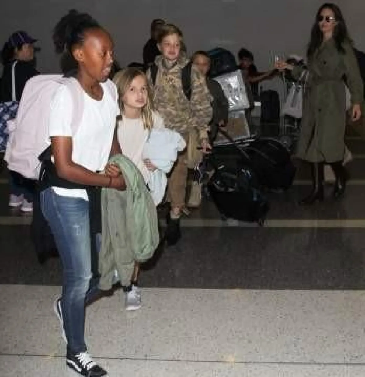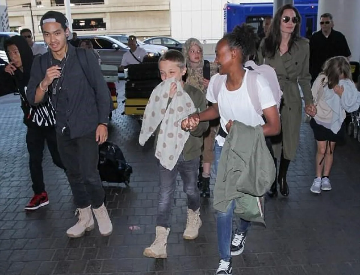 وشوهدت النجمة البالغة من العمر 42 عامًا مع أولادها الستة، وهم يغادرون مطار مدينة لوس أنجلوس الأمريكية.