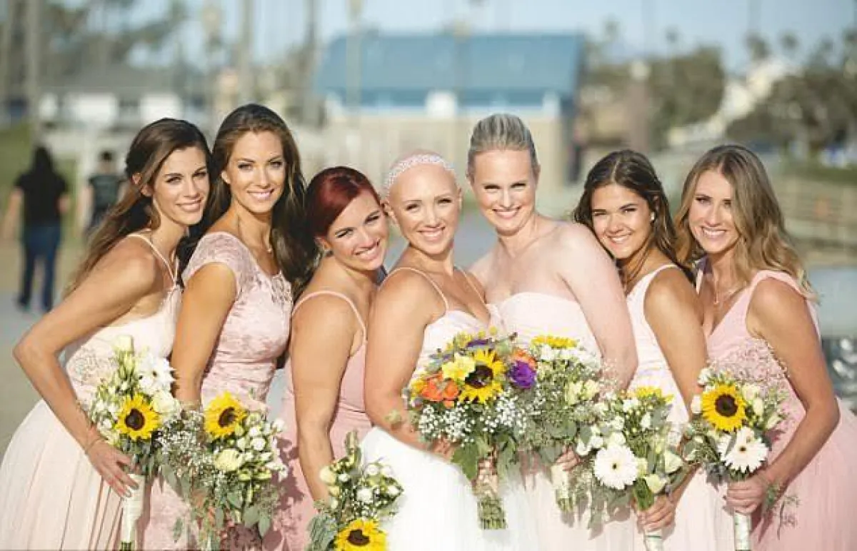 ونشر موقع "ديلي ميل" صوراً لعروس تدعى "كايلي بامبرغر" من ولاية كاليفورنيا الأمريكية أثناء زفافها وهي "صلعاء"، حيث قررت حضور الحفل على طبيعتها رافضة إرتداء الشعر المستعار.