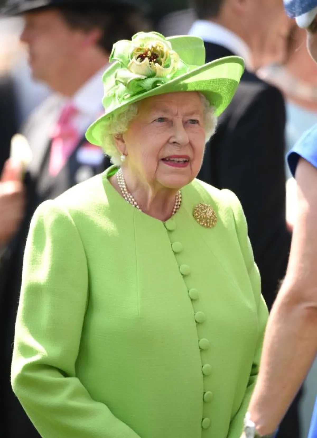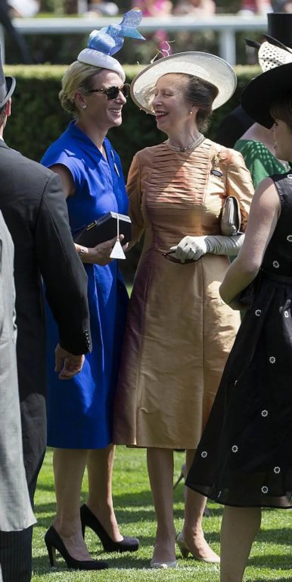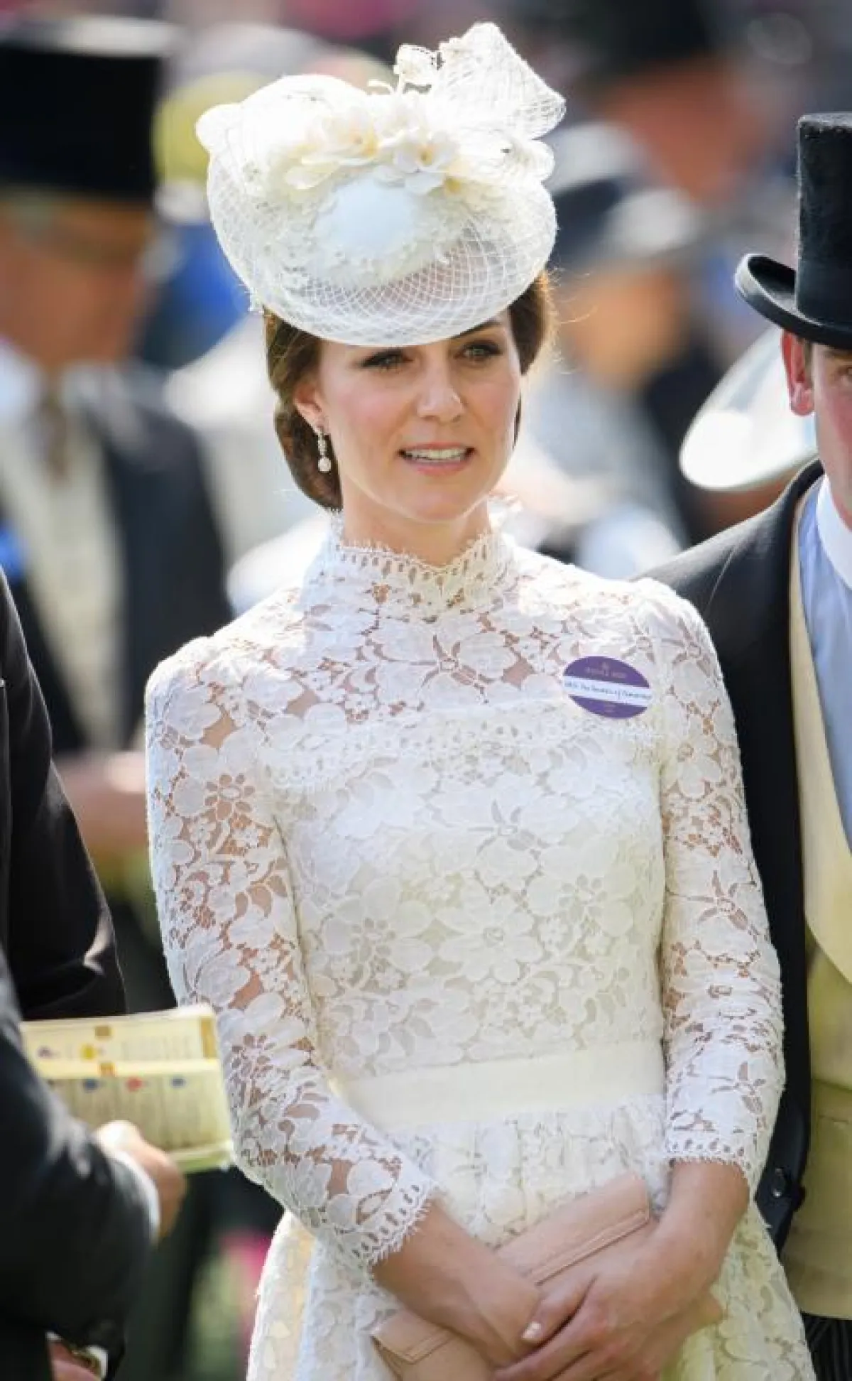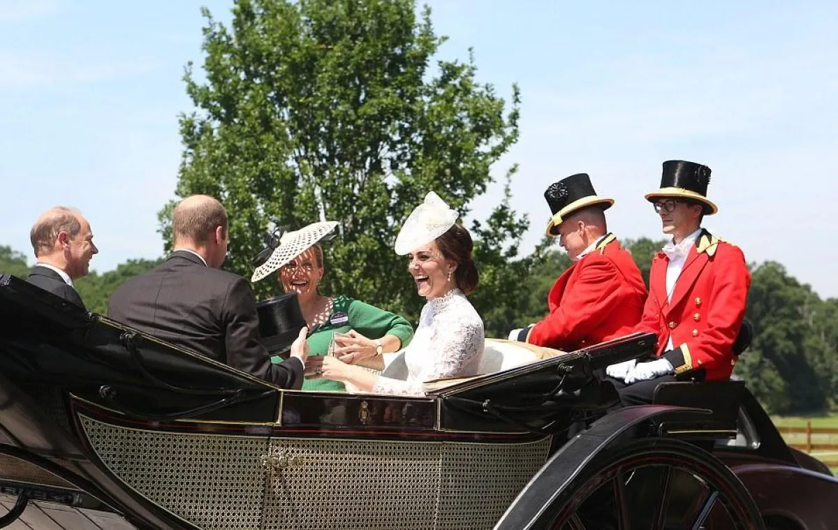 وإيذانًا ببدء المهرجان، وصلت "الملكة اليزابيث الثانية" إلى المكان، بالعربة الملكية التي تجرها الخيول، وبدت متألقة بمعطفٍ صيفي باللون الأخضر المضيء، مع قبعة كلاسيكية من اللون نفسه، تزينها الزهور الملونة، فيما جذبت الدوقة "كيت ميدلتون" الأنظار بثوب (ميدي)، من الدانتيل الأبيض بياقة رسمية مرتفعة، وحزام من الساتان الأبيض، وهو من تصميم دار Alexander McQueen، وقد زينت رأسها بقبعة من التول الأبيض والساتان، وحبات اللؤلؤ . اما "زارا تندال" حفيدة "الملكة اليزابيث الثانية"، فقد ظهرت بفستان " ميدي" من القطن الأزرق، مزموم عند منطقة الخصر، من تصميم دار Escada، مع حقيبة كلاتش سوداء، وحذاء أسود، مع قبعة باللونين الأبيض والأزرق .