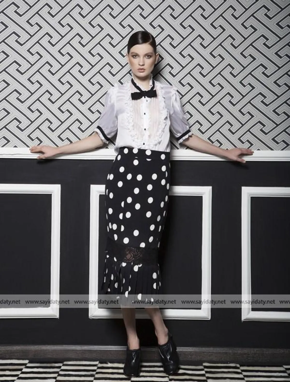 تنورة باللون الأسود منقّطة بالأبيض. السعر 1235$