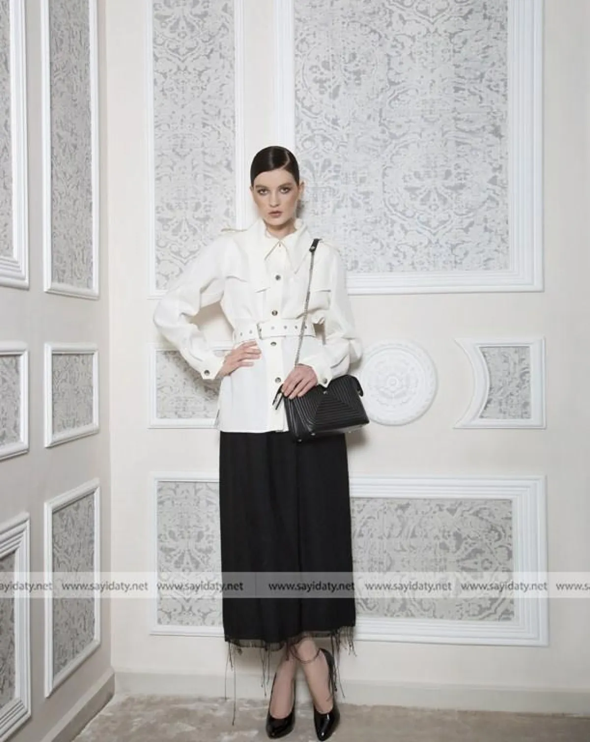 قميص من الساتان الأبيض. السعر 1110$