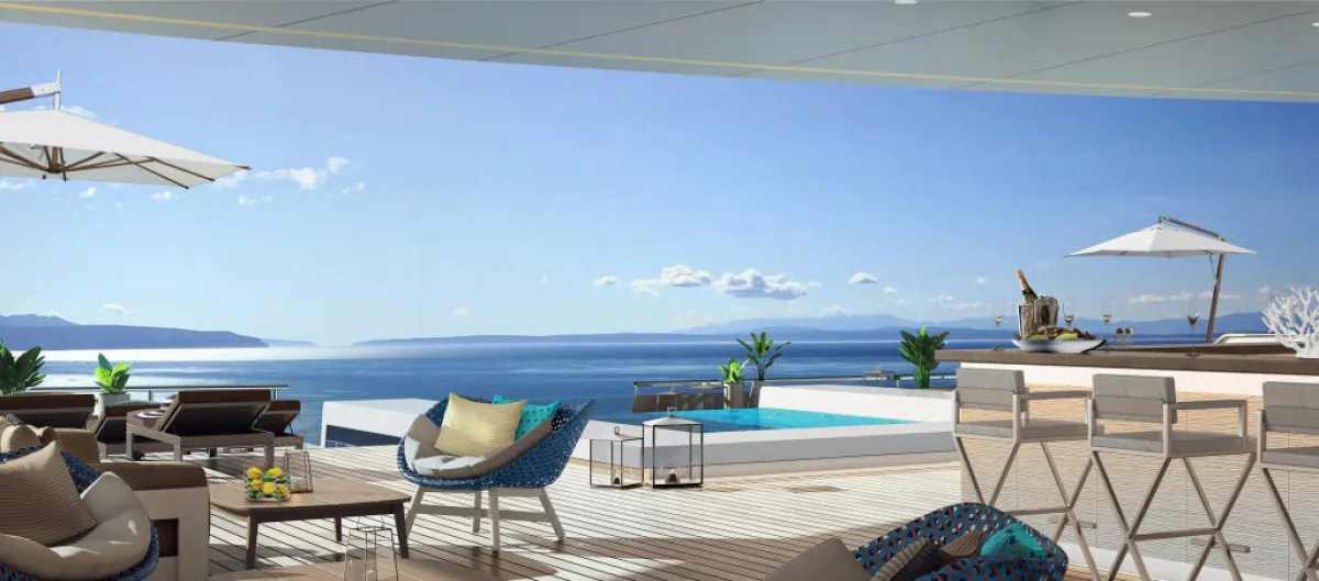 اليخت يستقبل 298 ضيفًا في 149 جناحًا، مزوّد كل منها بشرفة خاصة