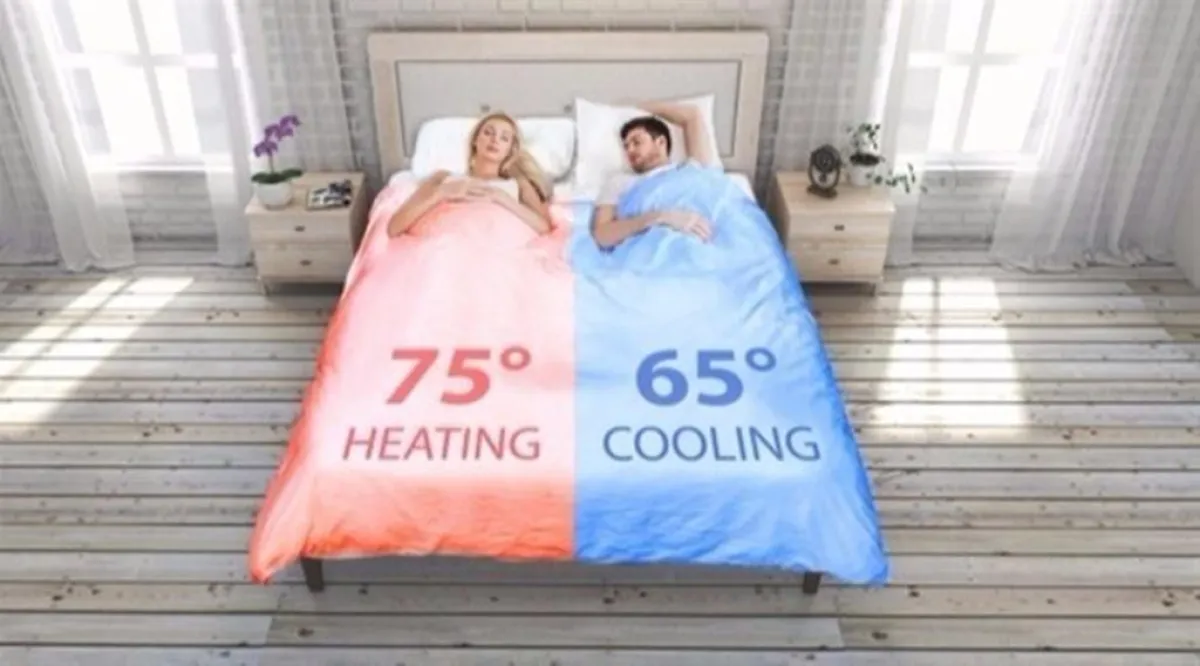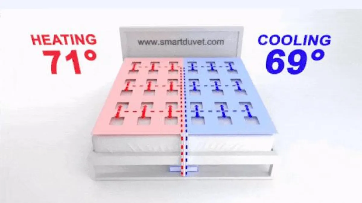 ولهذا السبب فقد ابتكرت شركة «سمارت دوفيت» الكندية حلاً مذهلاً يتمثل في لحاف سرير ذكي يمكن ضبط درجة حرارته وتخصيصه حسب تفضيلات الشريكين معاً في آن واحد.