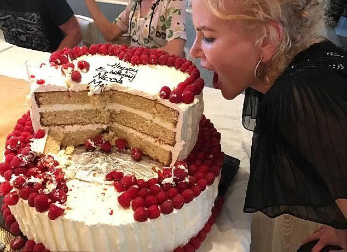 نشرت النجمة العالمية نيكول كيدمان Nicole Kidman لمناسبة ذكرى ميلادها الـ50، صورة مميزة وكأنها تلتهم قالب حلوى عملاقًا، إضافة إلى صورة لباقة من الزهور ومعها " بالونات".