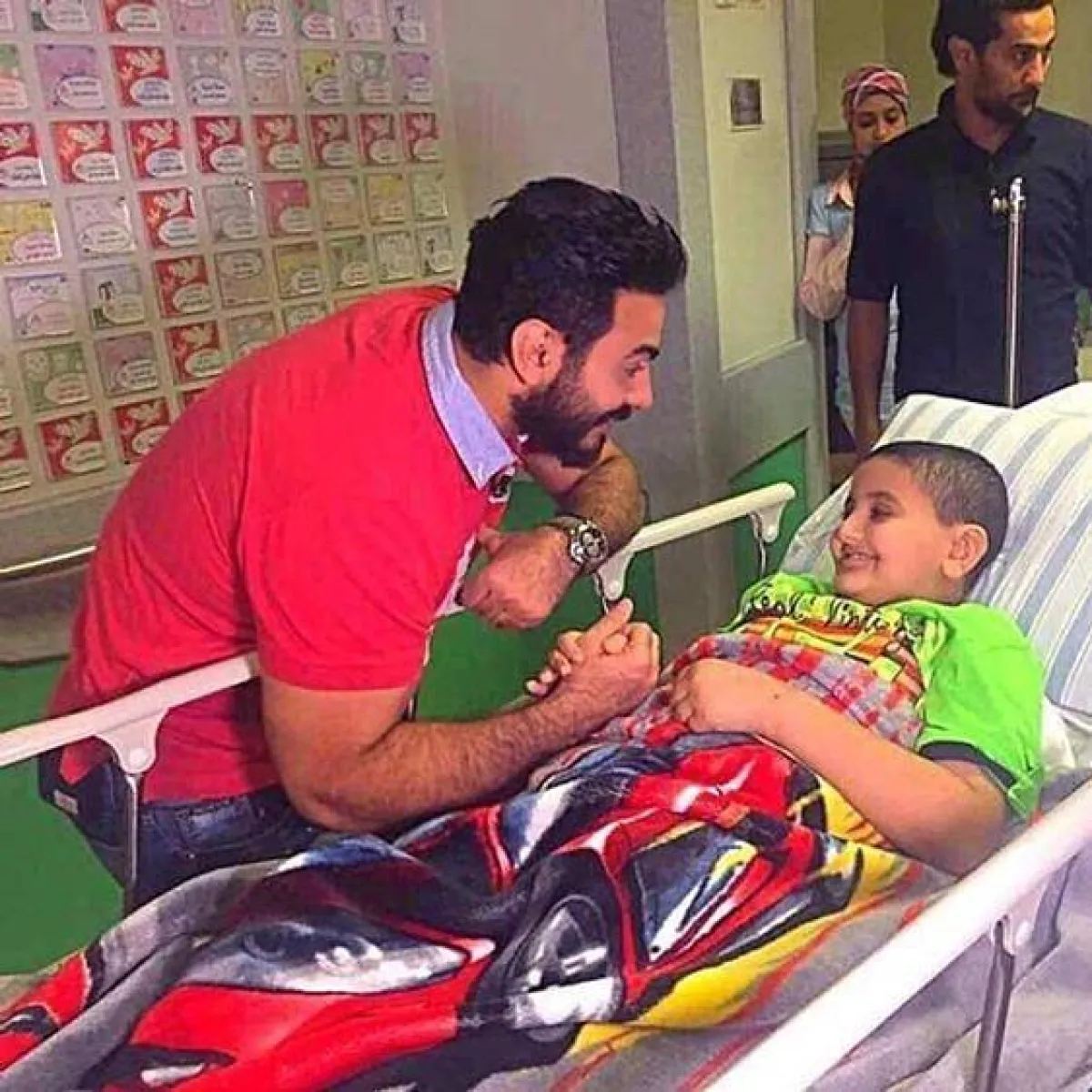 لبّى المطرب تامر حسني دعوة عاجلة من طفل يعاني السرطان، وصلته صباح أمس، فقام بزيارته عقب الإفطار مباشرة، مصطحبًا معه هدية، عبارة عن سيارة يتم التحكم بها عن بعد، وظل يشد من أزر الطفل المريض أمام والدته، من أجل تحمّل بقية العلاج.