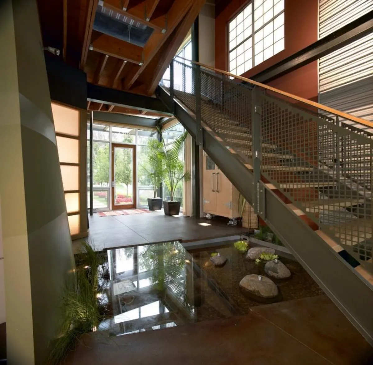 | الزجاج مناسب لأرضيّات المداخل والممرّات خصوصًا، وذلك عندما يتمّ حفر حفرة في الأرضيَّة بعمق يُراوح بين 12 و15 سنتيمترًا، فتوضع داخلها التحف أو الأحجار أو الماء والأسماك، ما يكسب المكان الذي تحلّ فيه غرابةً وحيويّةً.