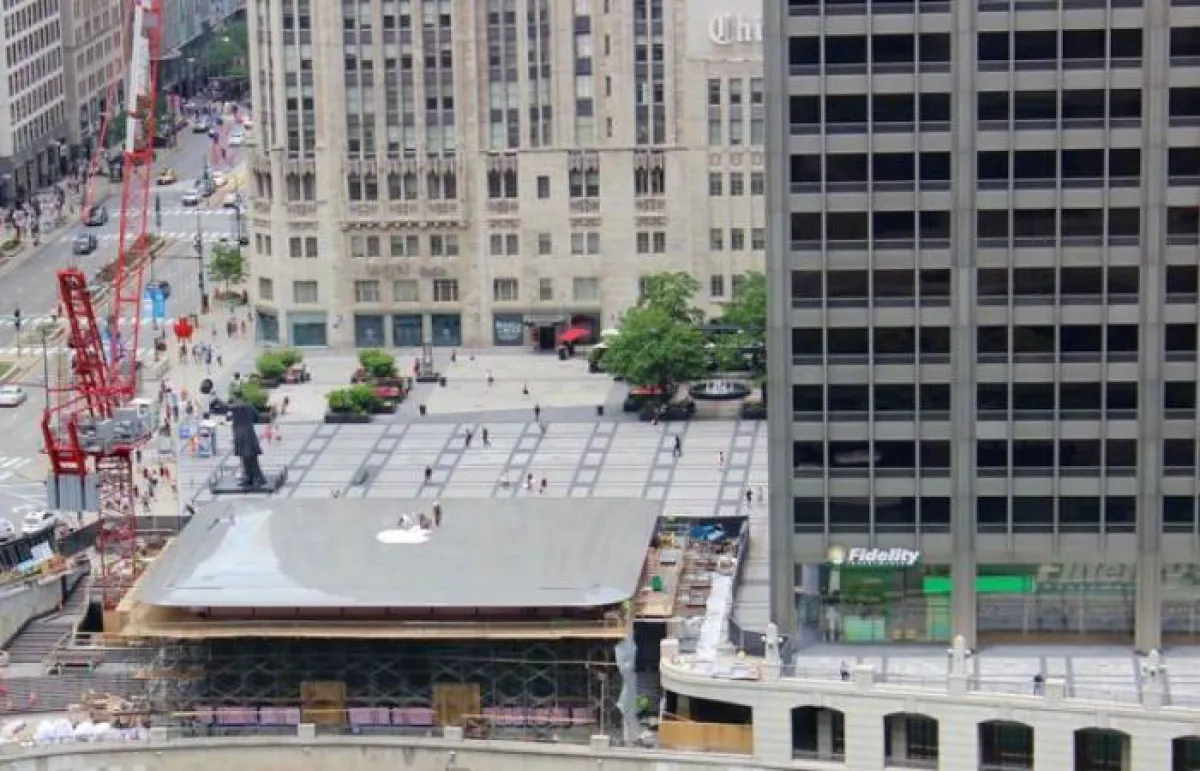 إختارت شركة "أبل" الأمريكية، تصميماً فريداً وغريباً لسطح متجرها الجديد في مدينة شيكاغو، بولاية إلينوي، إذ جعلته مصمماً على هيئة كمبيوتر "ماك بوك" المحمول.