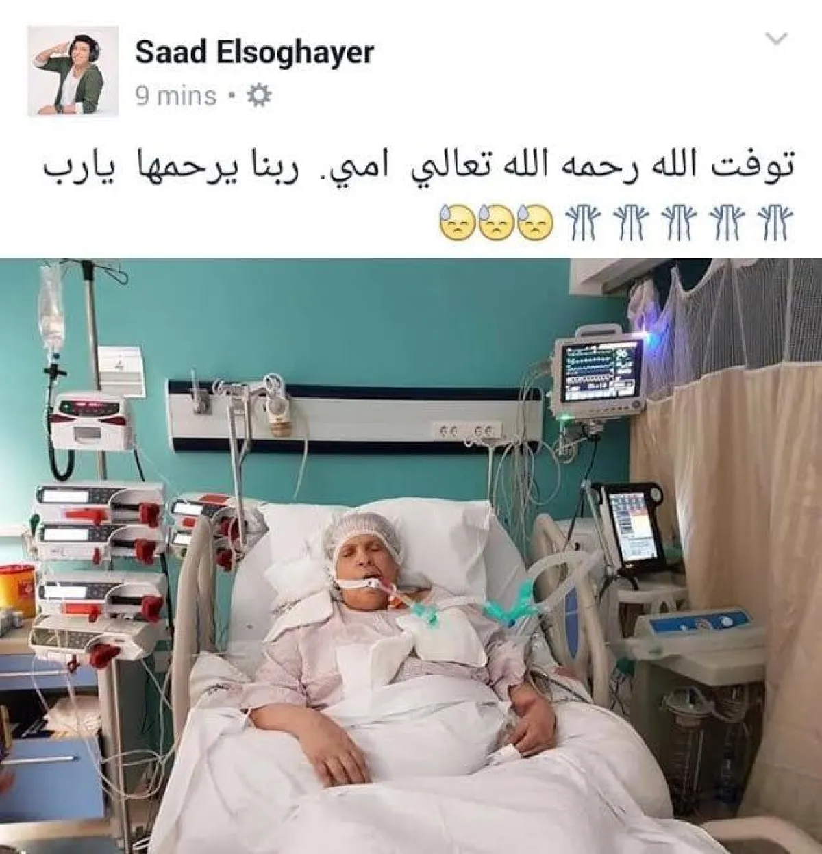 وكان جثمان والدة الفنان سعد الصغير وصل من مستشفى بدران بمنطقة المهندسين إلى أحد المساجد في منطقة شبرا الخيمة، بعد اعلان وفاتها فجر اليوم ، بعد صراع طويل مع المرض، وكان سعد الصغير طالب محبيه بالدعاء لوالدته بعد أن نشر صورتها من المستشفى.