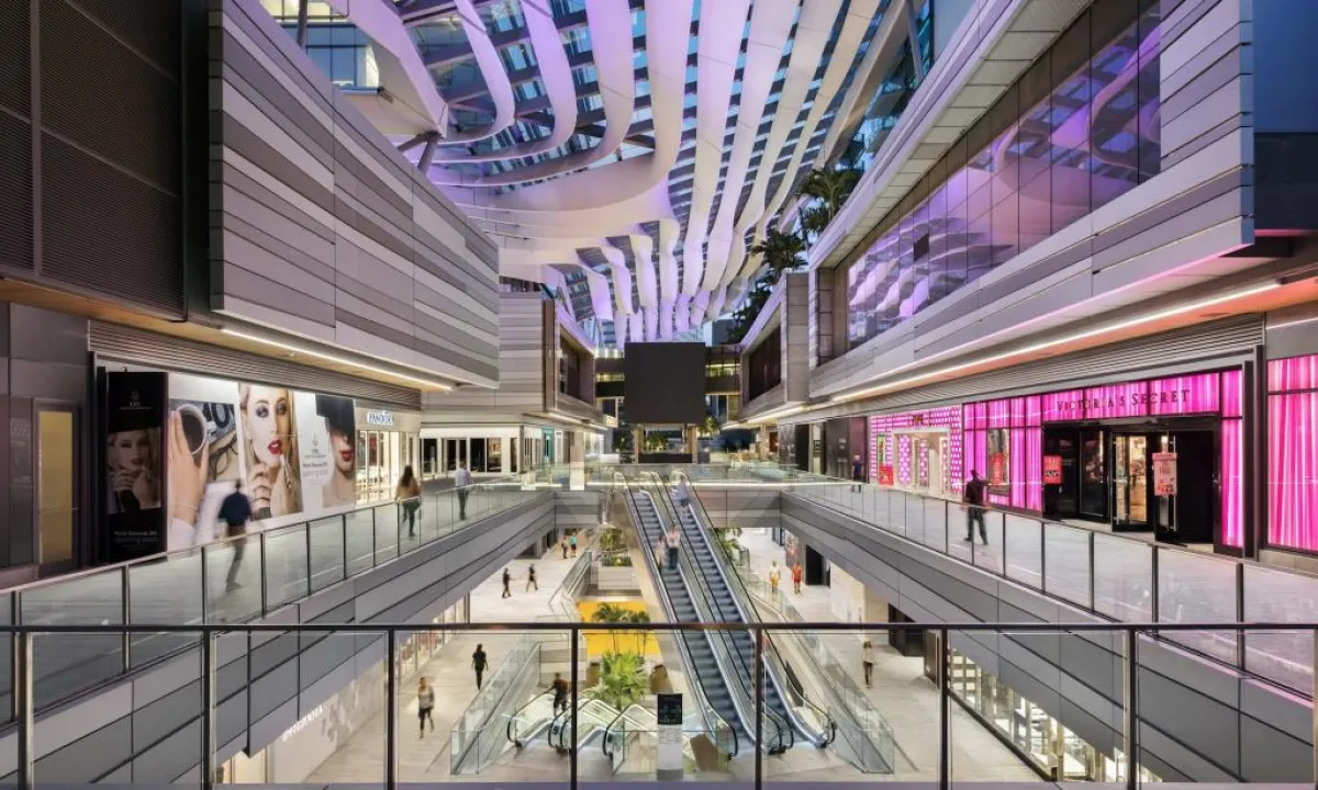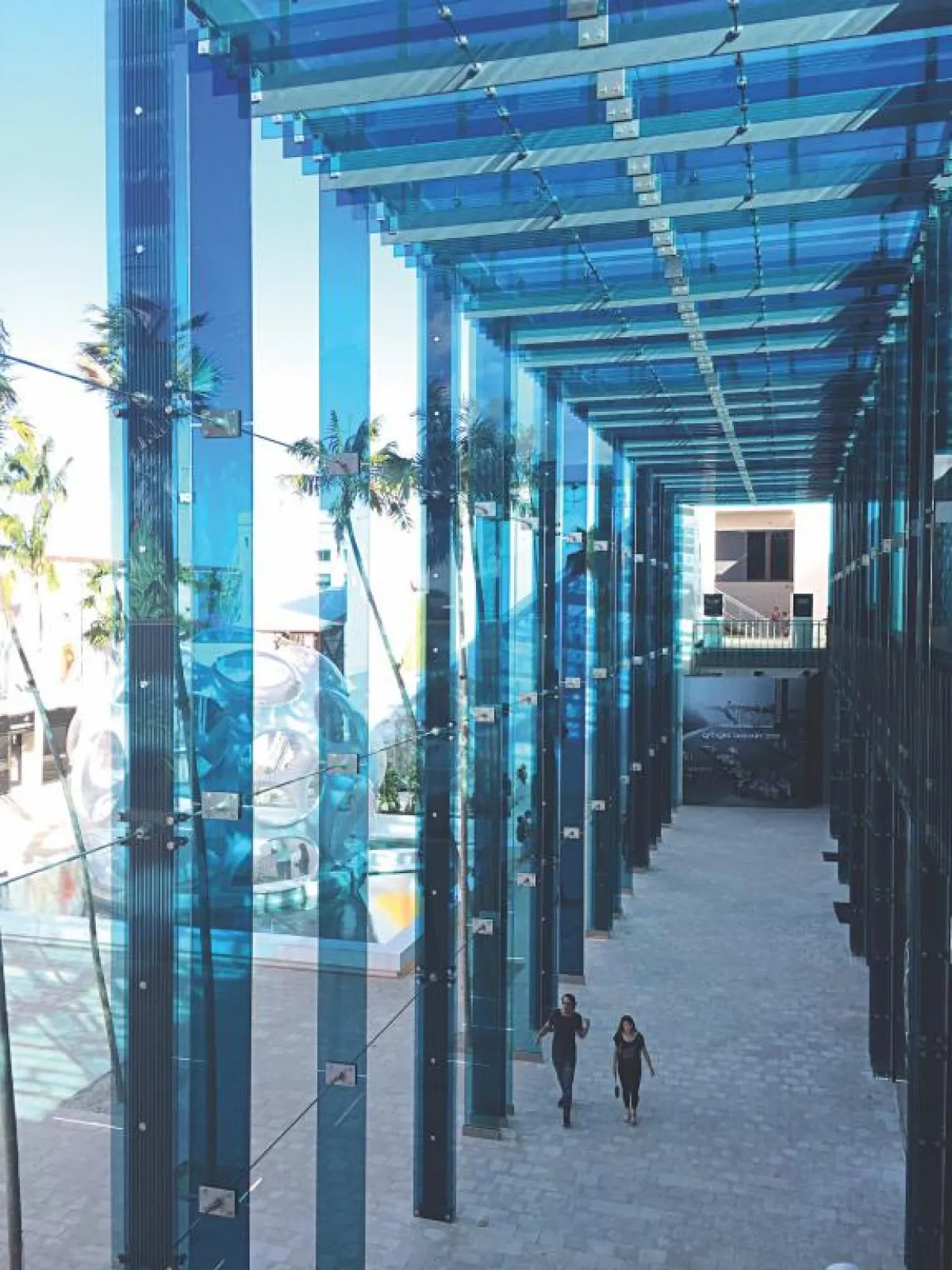 3."بالم كورت": في منطقة "ديسين ديستريكت" بـ"ميامي" الأمريكيّة، يجمع المجمع التجاري المذكور بين التسوق الراقي، والهندسة المعمارية المثيرة للإعجاب، بما في ذلك واجهة مكسوة بالزجاج الأزرق، من تصميم المعماري الياباني سو فوجيموتو. وتحوطه أكثر من 50 شجرة نخيل.