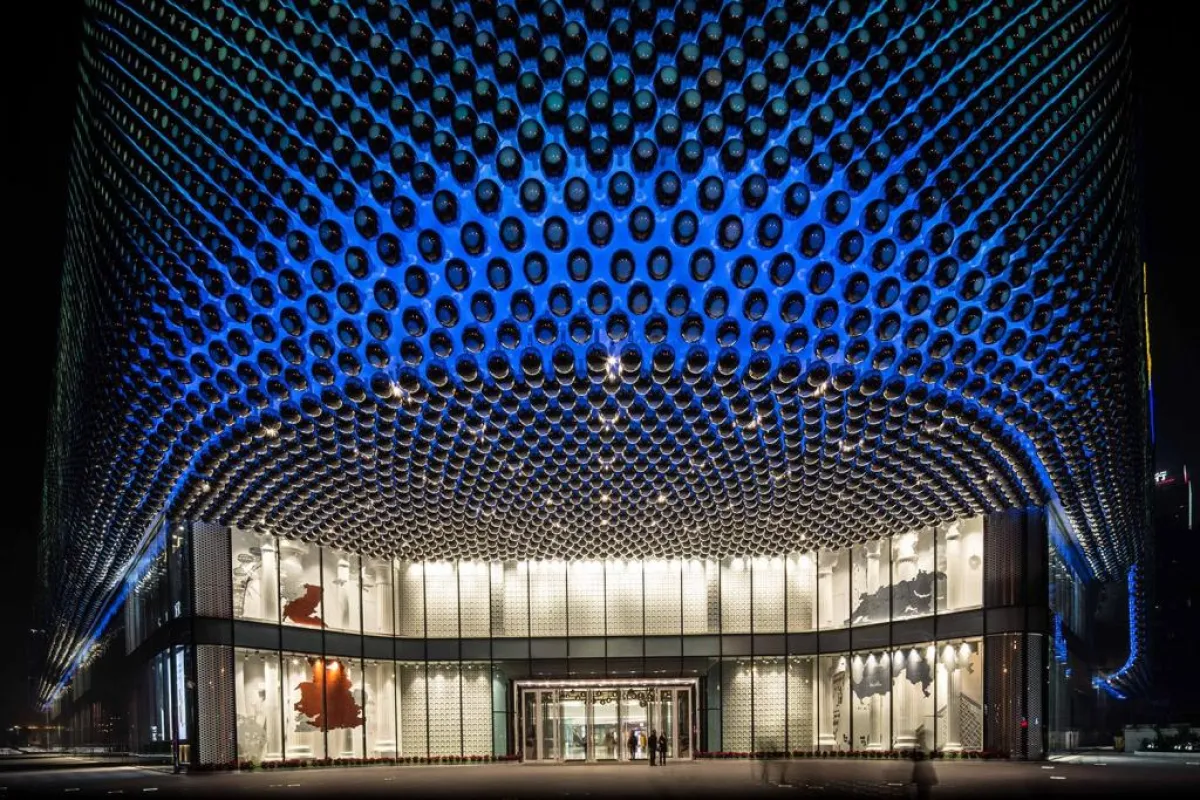4. "هانجي واندا": الفولاذ المقاوم للصدأ يزيّن واجهة مركز "هانجي واندا" التجاري الواقع في مدينة "ووهان" الصينيّة. المسافرون العرب إلى الوجهة الأخيرة يقصدون "هنجي واندا"، الذي يضمّ متاجر عالميّة ومطاعم ودور سينما.