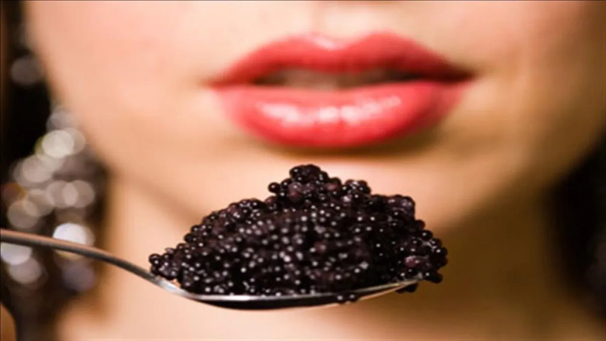 الكافيار: غني بالفيتامينات والمعادن وبخاصة معدن السيلينيوم، الذي يحفِّز الجسم على إفراز هورمونات، تساعد على إصلاح أنسجة الجلد التالفة، وتجديد بروتينات الكولاجين، وتحسين مرونة طبقة الأدمة تحت الجلد، وبالتالي التخفيف من ظهور التجاعيد.