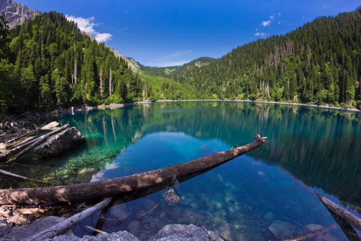 | بحيرة "ريتسا": في جبال القوقاز، وتحديدًا في الجزء الشمالي الغربي من "جورجيا"، تحيط الغابات الجبلية المختلطة بالبحيرة، وتتألق المروج عند السفح. و"ريتسا"، هي واحدة من البحيرات الأعمق في "جورجيا"، إذ يصل عمقها إلى 116 مترًا، وغنيّة بسمك السلمون المرقّط. وهناك، يُسجّل متوسّط درجة الحرارة السنوية في المنطقة 7.8 درجات مئوية، وتصل الحرارة في يناير/كانون الثاني إلى -1.1 درجة مئوية، فيما ترتفع في أغسطس/آب إلى 17.8 درجة مئوية.