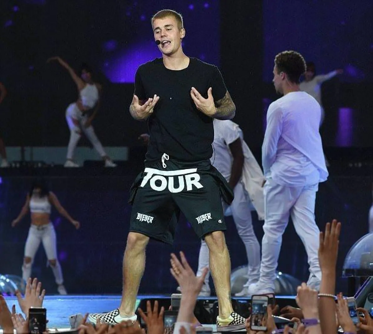 فبعد أن طلب أحد المعجبين منه تقديم أغنيته الشهيرة "Despacito" ورفض الأخير طلبه لأنه نسي كلماتها، حدثت مشادة بينهما، انتهت برفض المغني الكندي تلبية رغبة هذا الشخص، فما كان من الأخير إلا أن ألقى قنينة ماء ناحية بيبر، الذي تفاداها قبل أن تصطدم به.