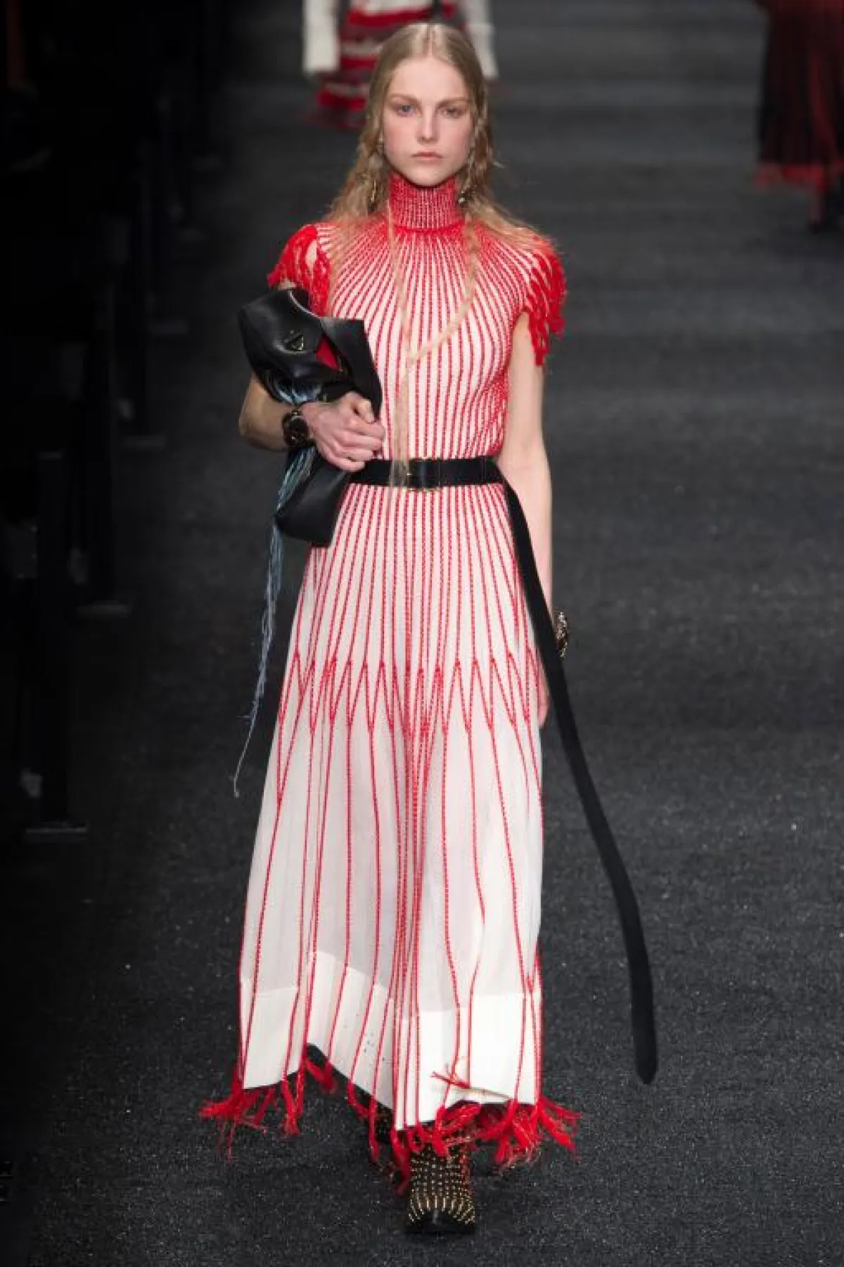 ومن خلال جولة قمنا بها على أخر صيحات خريف 2017، لاحظنا أنّ أغلب دور الأزياء العالمية، قدّم العديد من القطع التي تميزت بوجود شراشيب ملونة ومختلقة التصاميم ، حيث قدّم ألكسندر ماكوين Alexander McQueen فستانًا طويلًا باللون الأبيض، تميز بوجود شراشيب باللون الأحمر في جميع أجزائه، مع حزام عريض باللون الأسود. كما قدّم فستانًا أخر من قماش الجلد، باللون الأسود مع شراشيب ملونة بتصميم بسيط. أما برادا Prada فقد قدّمت فستانًا باللون الوردي الفاتح، تميز بوجود شراشيب ملونة في قسمه السفلي، أضفت عليه أسلوبًا خاصًا ومميزًا، وكالعادة يبهرنا بالمان Balmain في تقديم أزياء ذات تصاميم وألوان جذابة، فقدّم فستانًا متعدد الألوان، ومزينًا بنقشات وتطريز، بالإضافة إلى وجود شراشيب مميزة باللون البرتقالي في قسميه العلوي والسفلي.