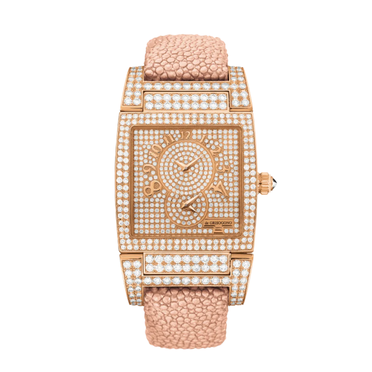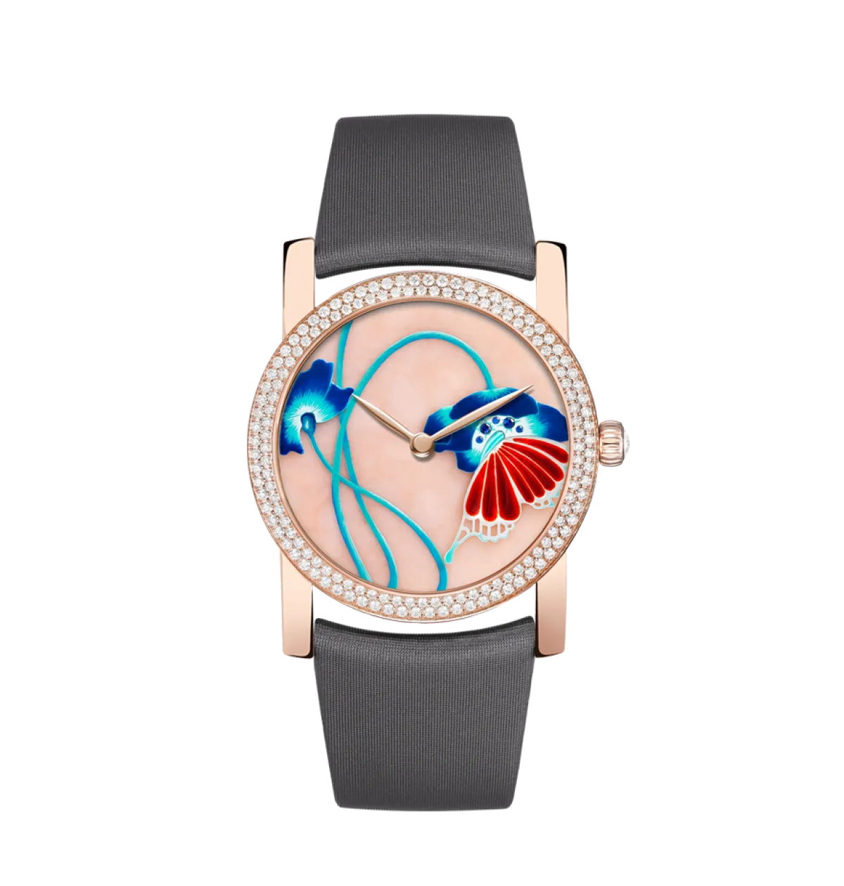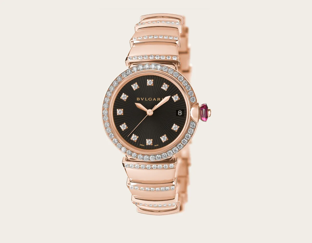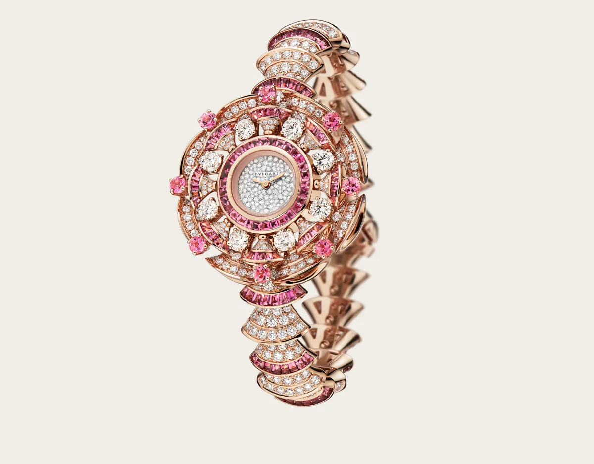 وبالطبع جميع قطع المجوهرات أساسية وضرورية لأناقة السيدة، إلا أنّ الساعات لها الحيز الأكبر، كونها من القطع التي تميز أسلوب كل سيدة عن الأخرى، فمنذ القدم هي من قطع التزيّن الأهم، ولهذا السبب قدمت دور المجوهرات العالمية، ساعات تميزت بتصاميم أنيقة وألوان مميزة، ولعلّ أكثر ما لفتنا، الساعات المصنوعة من الذهب الوردي المميز، فرأينا ساعة من ديور Dior تميزت بلونها الذهبي الوردي الذي يغطي كامل أجزاء الساعة، بالإضافة إلى الترصيع بحبيبات من الماس على قرصها. أما تيفاني أند كو Tiffany and co، فقد قدمت ساعة تميز قرصها باللون الذهبي الوردي المميز، والترصيع بالماس، أما السوار فجاء من الجلد الأسود الأنيق. ورأينا تصميمًا عصريًّا وغريبًا من بولغاري Bulgari، حيث رُصعت الساعة بأحجار من الماس والياقوت الوردي.