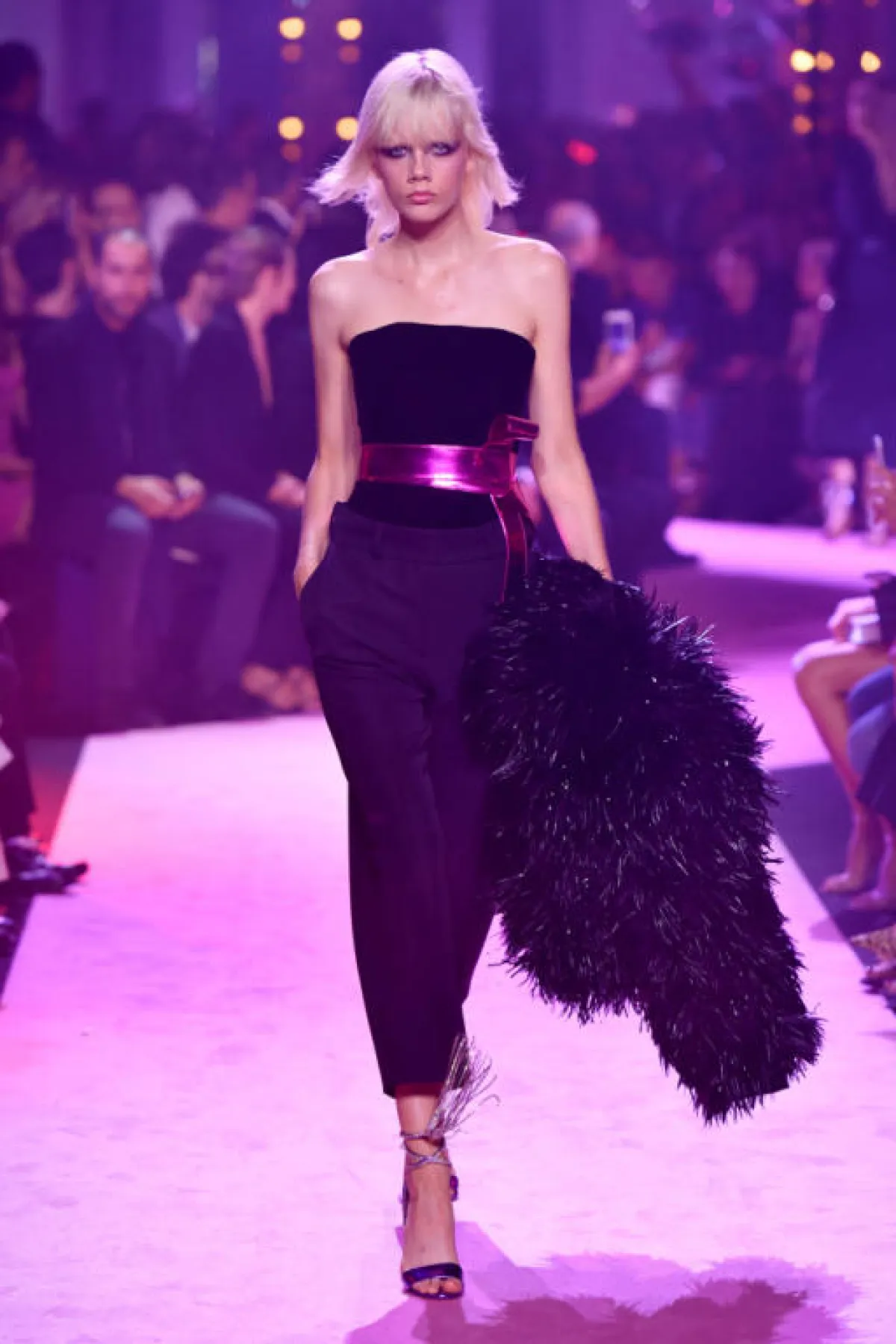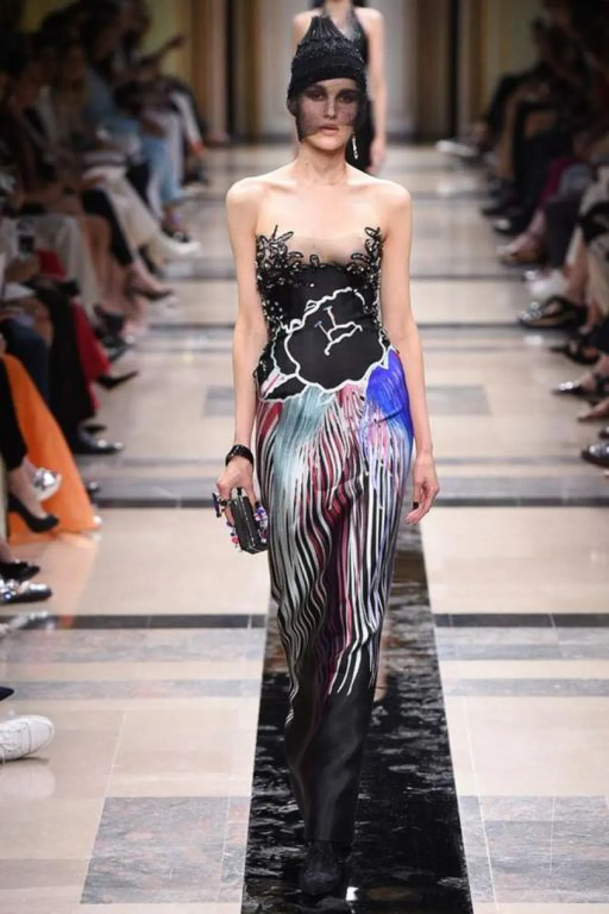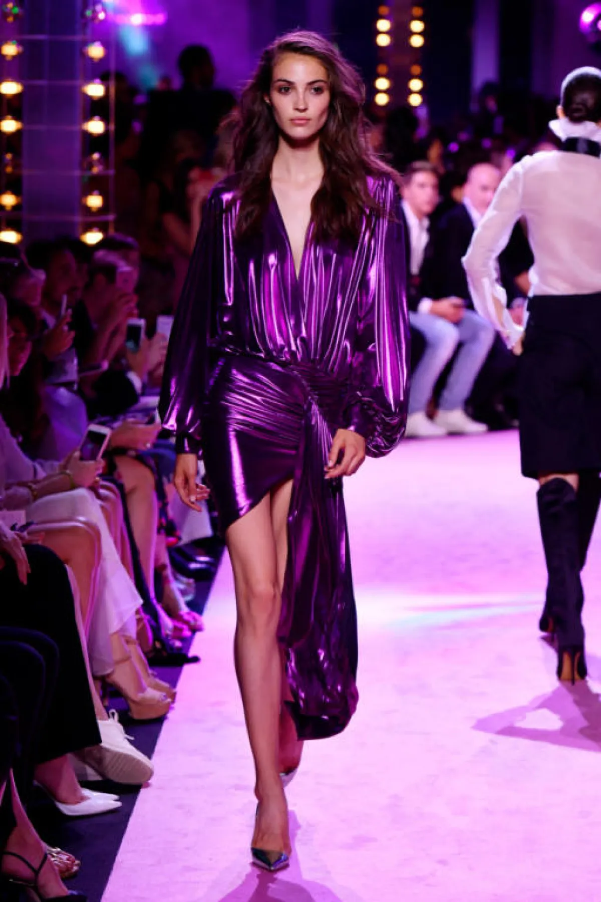 عرض "ألكسندر فوتيه" Alexandre Vauthier كان في المساء كالعادة فقد طغت الجاذبية والقوة على التصاميم فشاهدنا الكثير من الفساتين القصيرة، ومن أقمشة الشيفون، والأقمشة البراقة التي انعكس بريقها تحت الضوء البنفسجي في القاعة بطريقة مميزة، اضافة الى احساس الثمانينيات الذي يفضله Vauthier، وقد كانت "بيلا حديد" Bella Hadid ملهمة الدار وكذلك فقد افتتحت العرض.