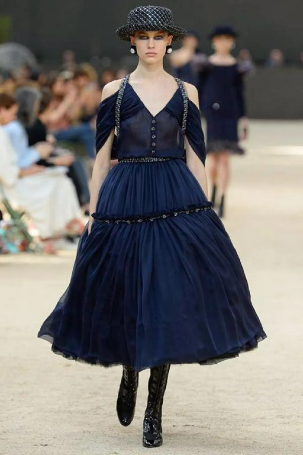 تابعنا ضمن فعاليات اليوم الرابع من أسبوع الموضة في باريس الكثير من العروض اللافتة، حيث بدأ النهار مع عرض أزياء دار "شانيل" Chanel لموسم خريف وشتاء 2017-2-18 للـ "هوت كوتور" Haute Couture وطبعاً مثل العادة فاجئنا "كارل لاغيرفيلد" Karl Lagerfeld بأفكاره الاستثنائية، وخاصة فيما يتعلق بأجواء العرض، فبعد أن أنشاء قاعدة صاروخية في الموسم الماضي، هذا الموسم قام ببناء برج ايفيل في قاعة الـ Grand Palais حيث أن المجموعة كانت مستوحاة من باريس ومن المرأة الباريسية، ولهذا فقد شاهدنا الكثير من رموز الدار من أقمشة التويد، والتيورات الأنيقة ذات الأكمام المنفوخة، والفساتين السوداء الكلاسيكية التي دخلتها لمسات من الفخامة الراقية، اضافة الى بعض التفاصيل العصرية التي لم تؤثر على مضمون المجموعة العابقة بالتفاصيل الغنية.