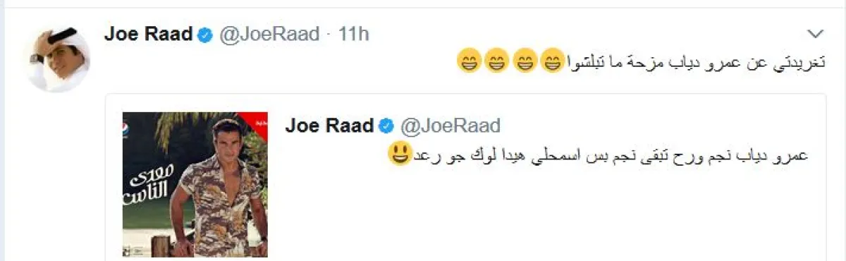 نفى الفنان جو رعد في اتصال مع "سيدتي نت" نيّته الإساءة إلى الفنان تامر حسني، من خلال التغريدات التي كتبها مساء أمس عبر حسابه الخاص على "تويتر"، مؤكّداً أنّه أراد الإضاءة على قضيّة رأى أنّها تمسّ بصورة الشعب اللبناني.