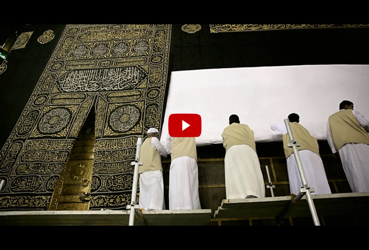 وأظهر المقطع المصور لحظة قيام العاملين باستخراج ورقة ملفوفة داخل "ستار الكعبة"، تردَّد بأن فيها طلاسم سحرية.