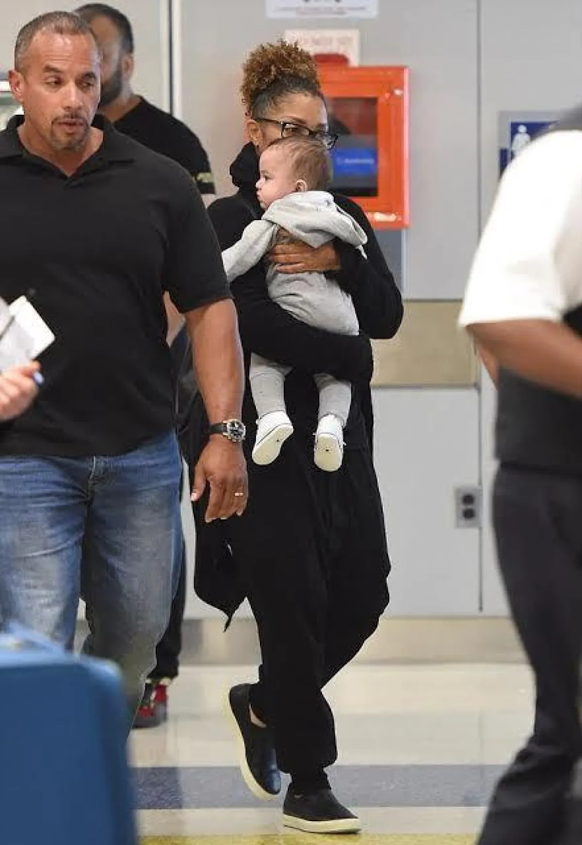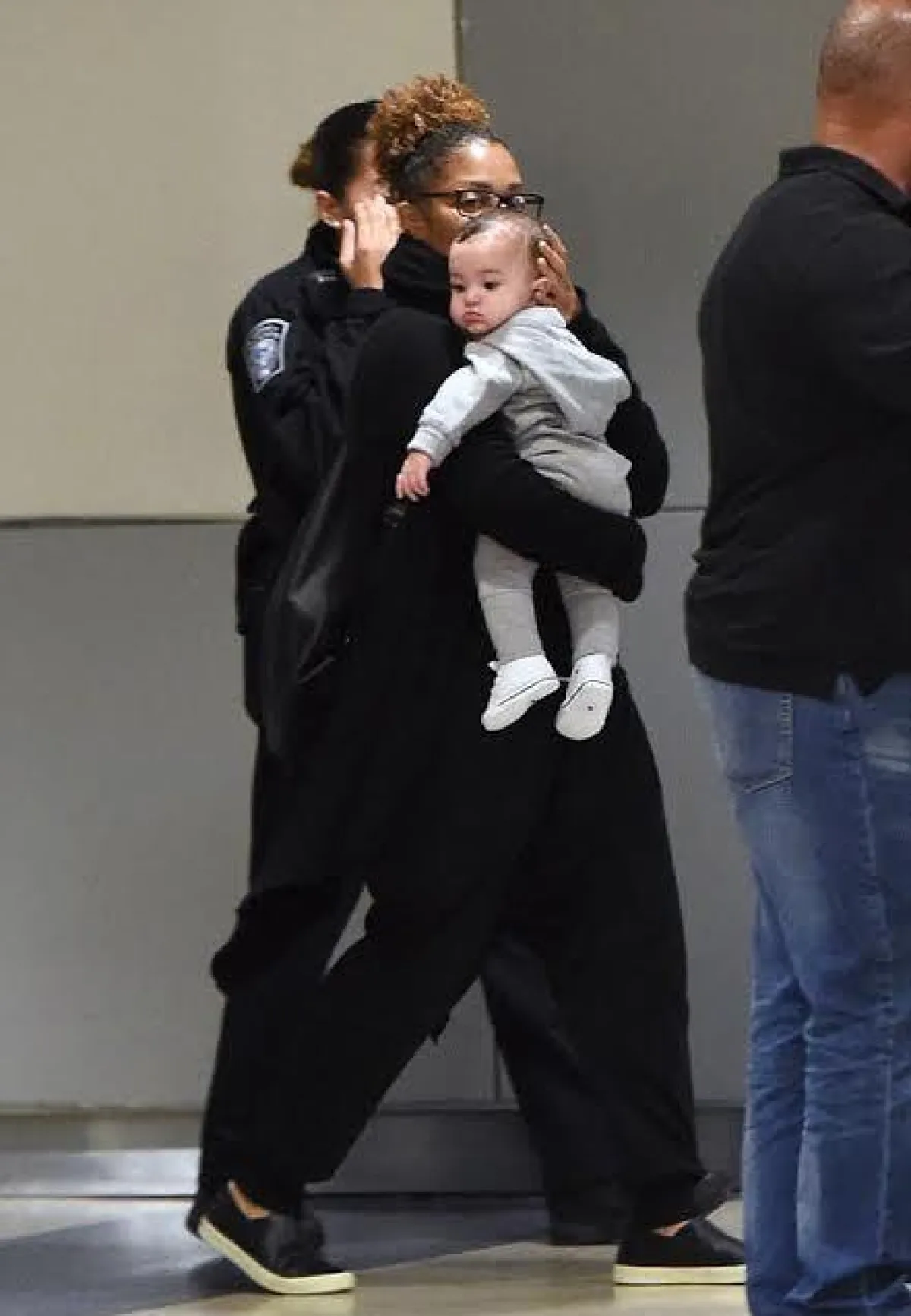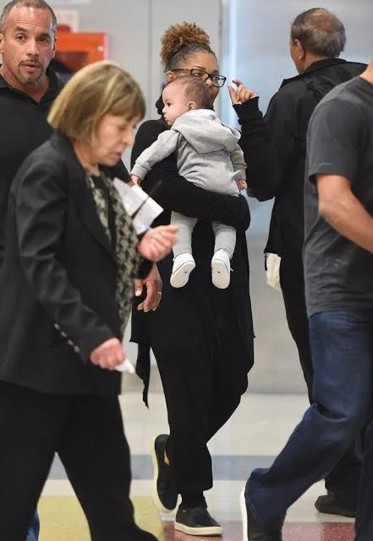 التقطت عدسات كاميرات الباباراتزي صورًا للمغنية الأمريكية الشهيرة جانيت جاكسون Janet Jackson مع طفلها الصغير "عيسى"، وهي تحمله في أحضانها في المطار.