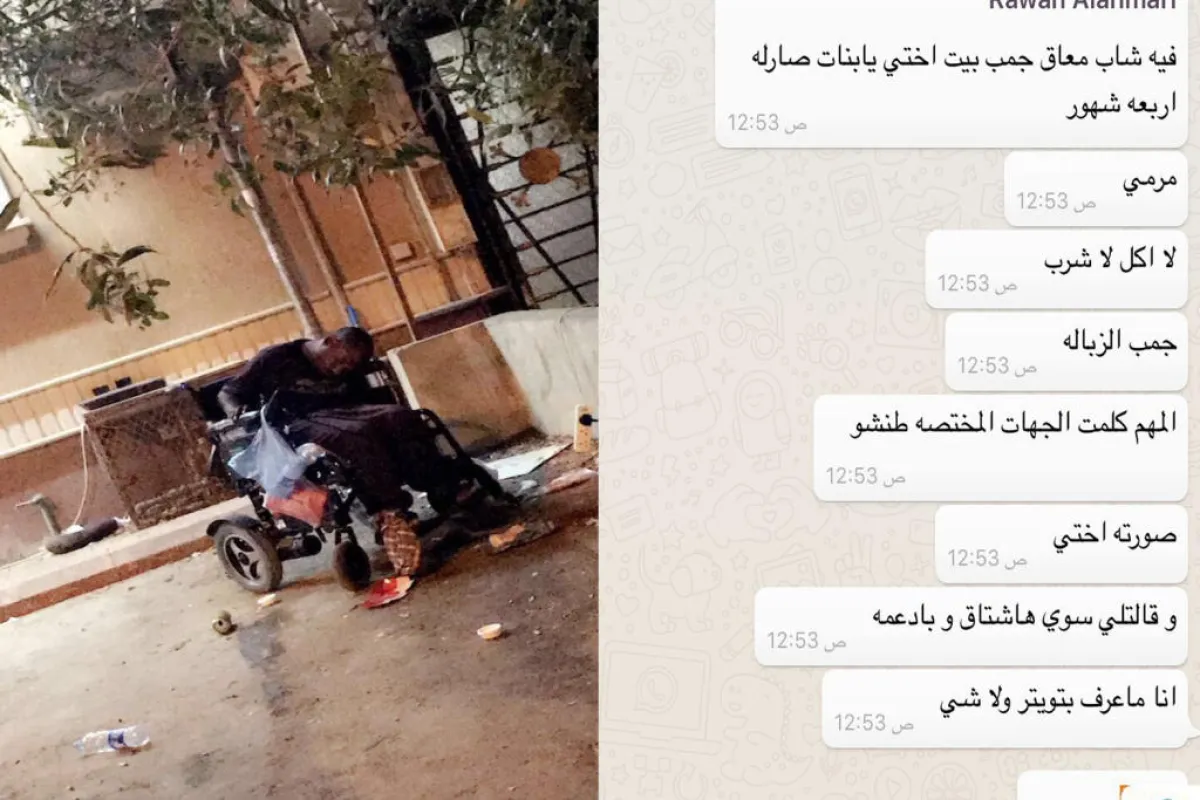 وفي التفاصيل، نُشرت رسالة مرفقة بصورة على موقع "تويتر"، جاء فيها "معاق بجانب منزل أختي. يا بنات صار له 4 شهور مرمي لا أكل ولا شرب".