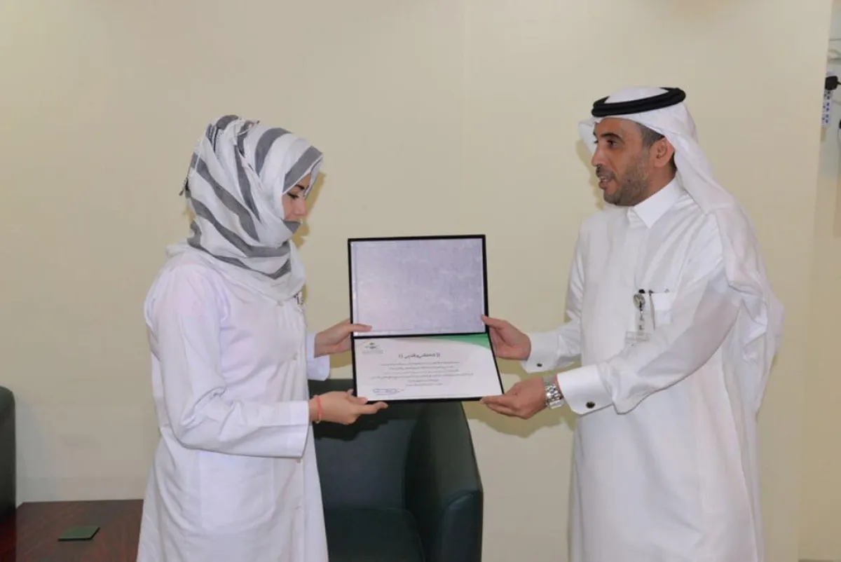 كرمت صحة جدة ممثلة في مساعد مدير الشؤون الصحية بمحافظة جدة للموارد البشرية والشؤون المالية والإدارية، الدكتور عقاب الذيابي، نيابة عن مدير الشؤون الصحية بمحافظة جدة الدكتور مشعل السيالي، بمكتبه اليوم الأربعاء كلاً من أخصائية التغذية الأستاذة ود أزهر، والدكتور محمد جبريل من مستشفى الملك فهد بجدة، وذلك نظير إنقاذهم حياة أم وطفلها وقيامهم بتوليد سيدة من الجنسية السودانية.