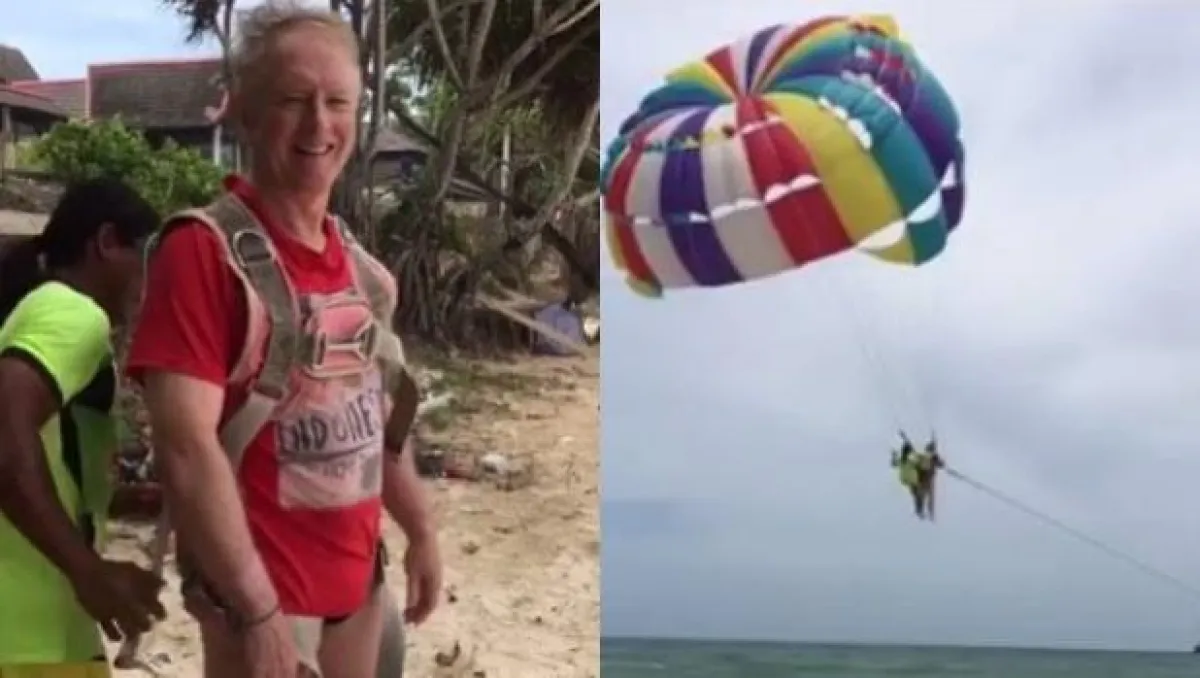 توفي رجل أعمال أسترالي بارز في تايلاند أثناء ممارسة رياضة التزلج الهوائي parasailing. وقد التقطت زوجته فيديو وثّق اللحظة المرعبة، التي حولت رياضته الترفيهية الى مأساة حقيقية.