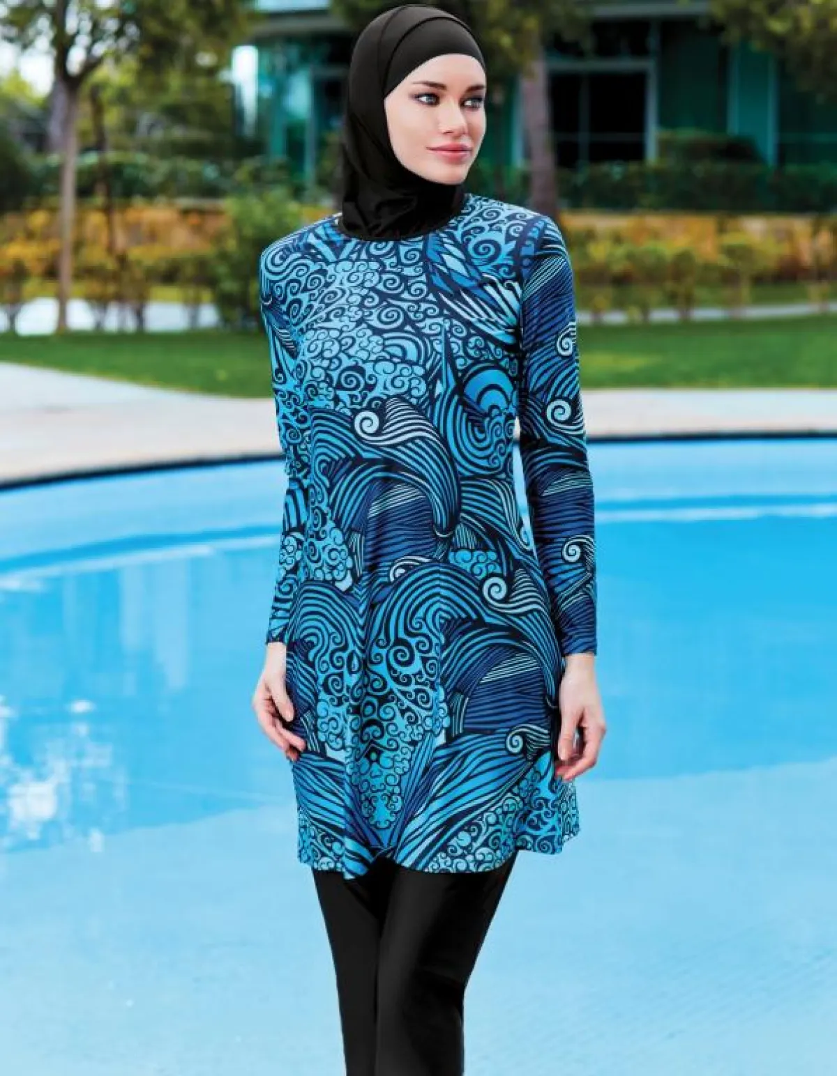 - ألوانًا داكنة، لأنها تكون أكثر حشمة بعد الخروج من الماء، ولا تُظهر ملامح الجسد.