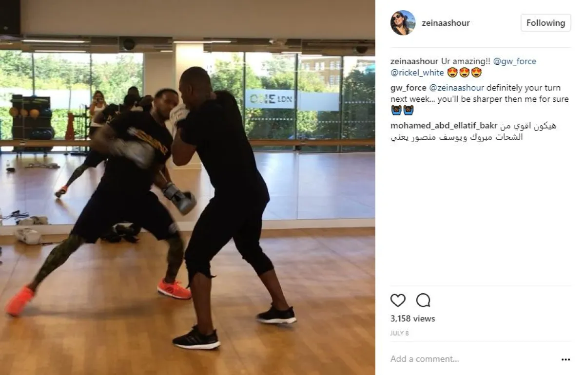 وبعدها نشرت زينة عبر الحساب نفسه، أول صورة لها أثناء التدريبات مع جاري، وقالت إنها مشتاقة إليه كثيرًا، وردّ عليها سريعًا بأنه مشتاق للعودة للتدريب معها أكثر، وكان لافتًا أنّ قبضة زينة بقفّاز الملاكمة الأبيض، موجهة نحو عدسة الكاميرا وكأنها تهدد الجميع.