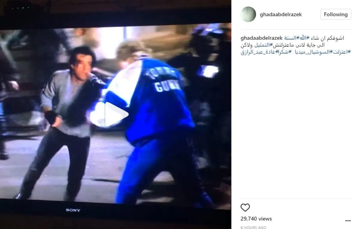 أضافت بتعليق آخر عبر حسابها بموقع انستقرام على الفيديو نفسه: اشوفكم ان شاء الله السنة الجايّة لأني ما عتزلتش التمثيل، ولكن اعتزلت السوشيال ميديا، شكرًا غادة عبد الرازق.
