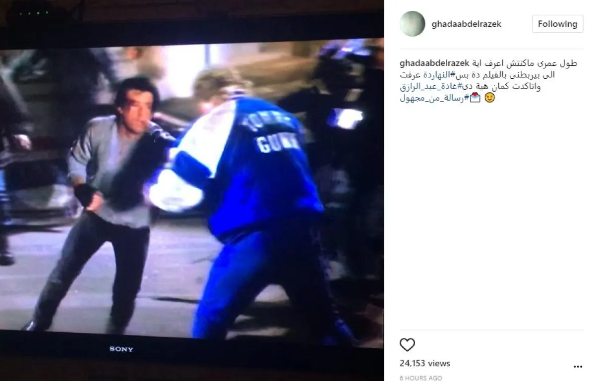 غادة نشرت أولًا مقطعًا من فيلم "رامبو"، حيث يقاوم البطل ضربات متلاحقة من خصمه القوي، ثم يسعى للتفوق عليه، على وقع صرخات من طفله الذي يطالبه بالنصر، وعلقت قائلة: طول عمري ماكنتش اعرف ايه اللي بيربطني بالفيلم ده، بس النهار ده عرفت واتأكدت كمان، هيّة دي غادة عبد الرازق، ودشنت هاشتاق رسالة_من_مجهول.