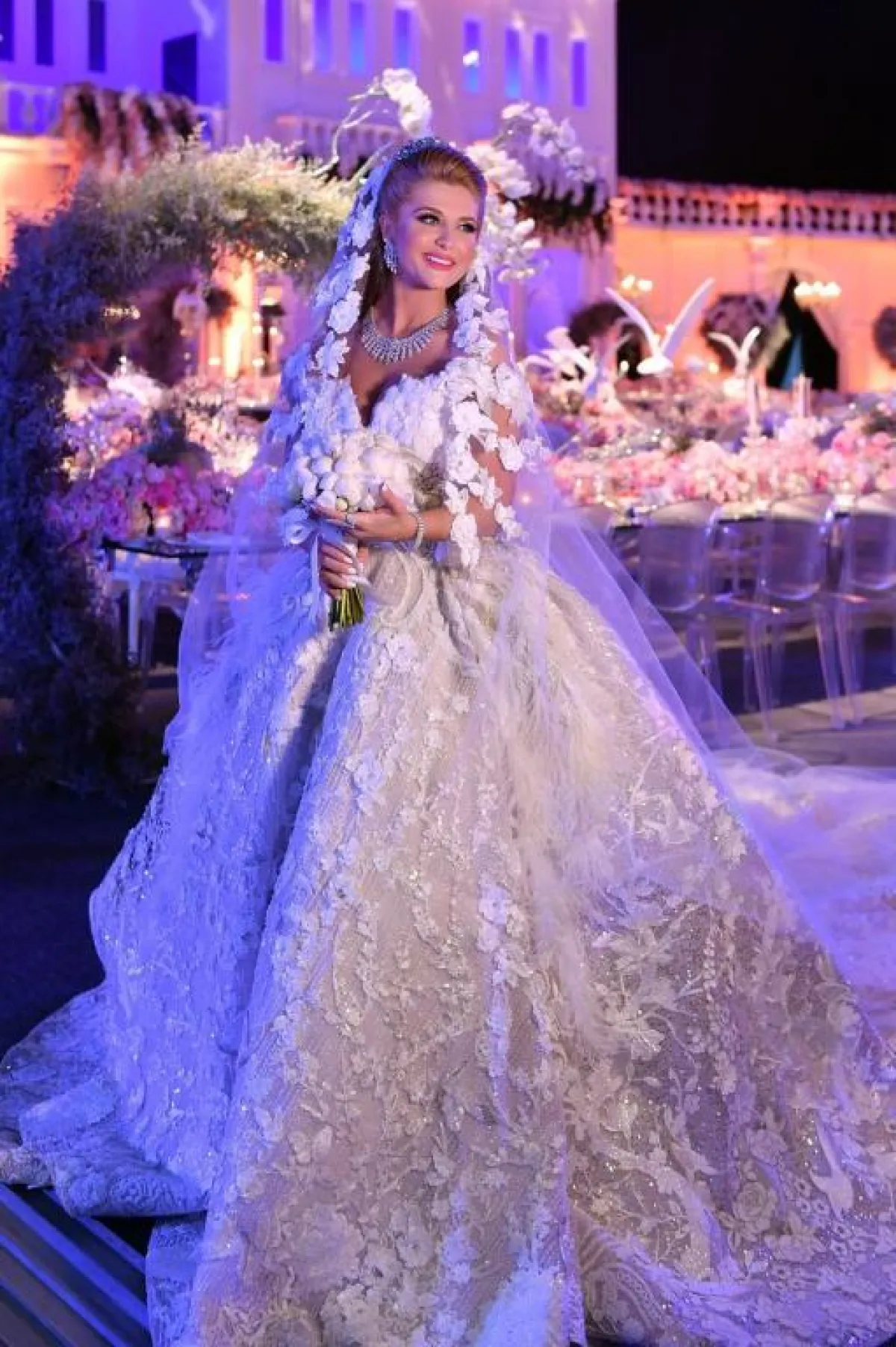 وفي هذا السياق، نشر المصور اللبناني فاكو كباريان صاحب ستوديو brightlightimagephotography صورًا للعروس، ومن الحفل الفخم.