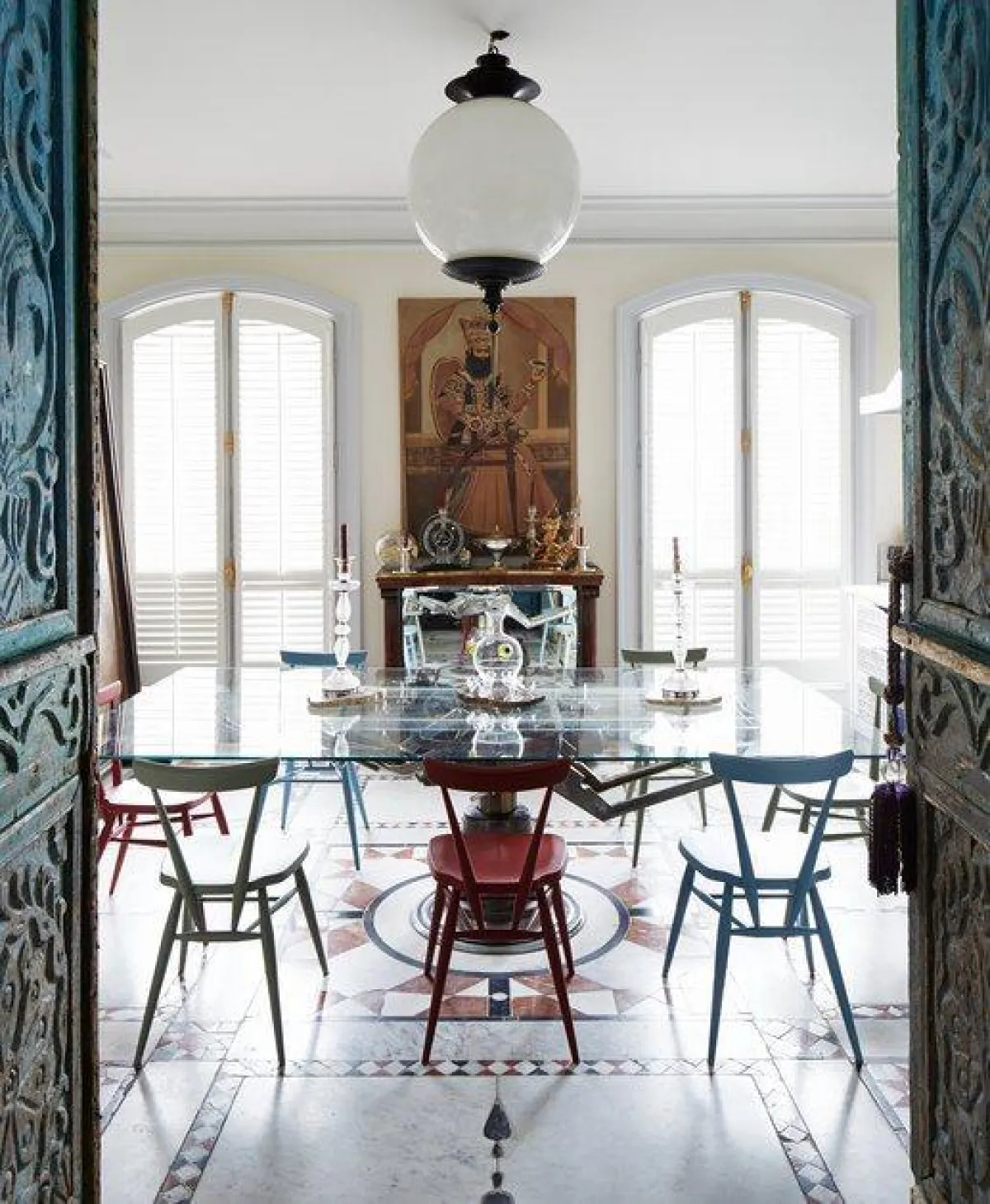 في الصالون، ليس للمبالغة مكان في الديكور البسيط، الذي يقتصر على الأثاث الضروري. علمًا بأنّ لون المقاعد الأزرق يضفي قيمة على المكان. أمّا اللون الوردي فيشيع ألقًا في غرفة المعيشة المؤثّثة بأرائك وثيرة تتكئ إلى سجادة كلاسيكيّة تفترش الأرضية المُعدّة من ألواح الخشب المائل الى اللون الأحمر. ولكل "اكسسوار" قصّة تخبر عن كنوز البلاد المنتمية إليها. وتروي "ديكورات" غرفة الطعام، بدورها، حكايا عن عصور مختلفة، وتتوسّطها طاولة معدّة من الزجاج، تحوطها كراسٍ بثلاثة ألوان مختلفة.