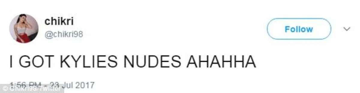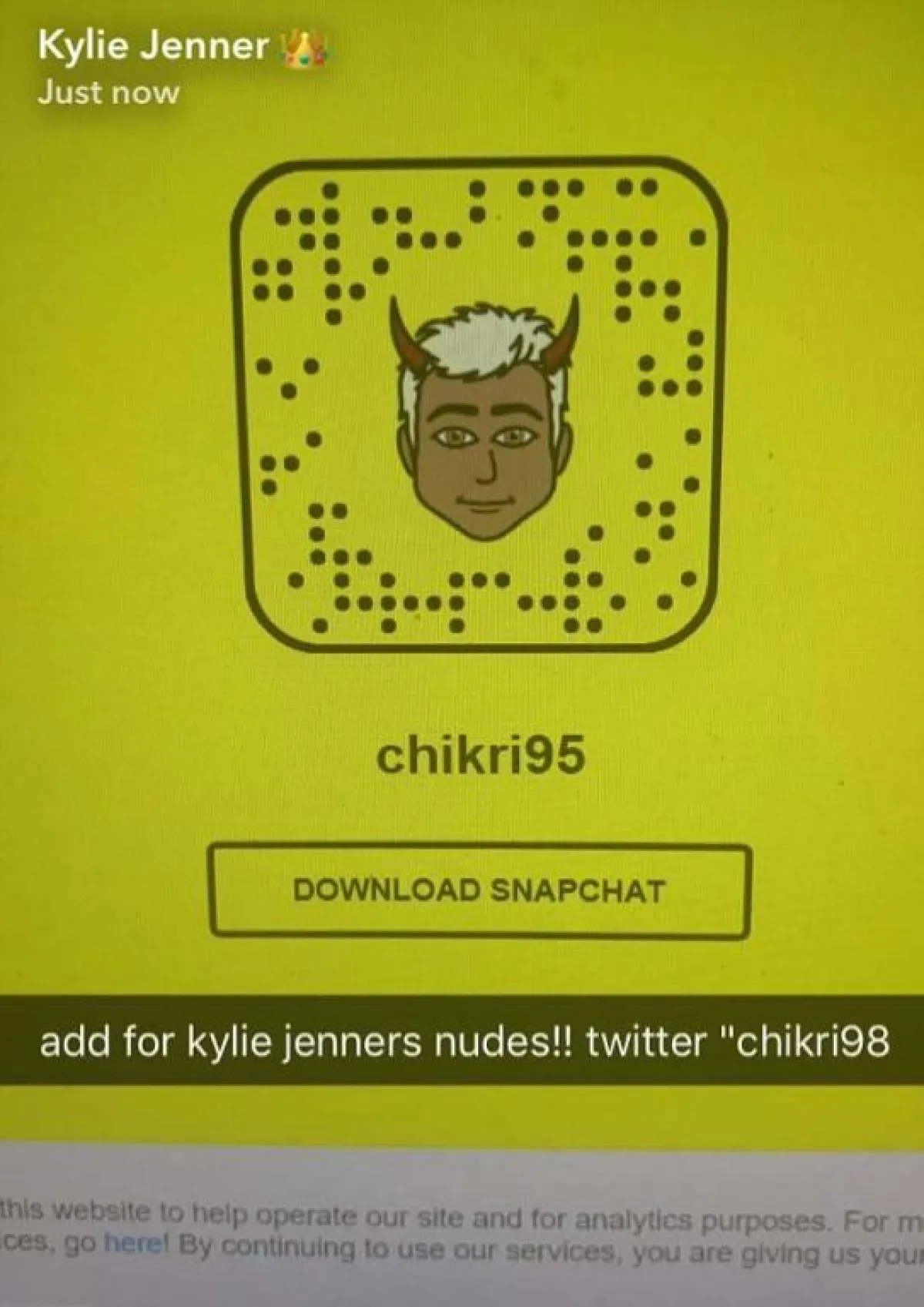 وقد فوجىء متابعو النجمة البالغة من العمر 19 عامًا، برسالة غريبة على حسابها في "سناب شات" يوم الاحد، من قبل مستخدم باسم "chriki95"، يطلب فيها من متابعي جينر، أن يتابعوا حسابه لمشاهدة صور فاضحة لكايلي.