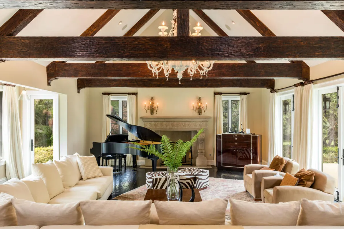 يبدو استعمال الألوان الحيادية الكلاسيكيّة موفقًا في نشر الهدوء في أرجاء الفيللا، من دون الإغفال عن عنصر الفخامة المهيمن على "الديكورات" الداخليّة. وهناك، تتعدّد الجلسات المُهداة للترفيه، كالمنطقة التي تحوي طاولة للعب الـ"بلياردو" وملعب الـ"تنس" والمسرح والصالة المخصّصة للعب الـ"بولينغ". فور دخول المنزل، تتجلّى الأناقة النيو كلاسيكية، ومن الملاحظ أن الصالون الفسيح يحظى بكمّ وافر من الضوء الطبيعي، المُتسلّل إلى الداخل عبر النوافذ الضخمة الوافرة. كما يتلألأ اللون البيج على مكوّنات الصالون، حيث وُزّعت الأرائك الوثيرة بطريقة مدروسة، ليسهل التواصل بين الجالسين إليها. وتتشارك أعمال الخشب والرخام في إشاعة الفخامة في المساحة، التي تضم أيضًا آلة "بيانو" تعزف عليها المغنية.
