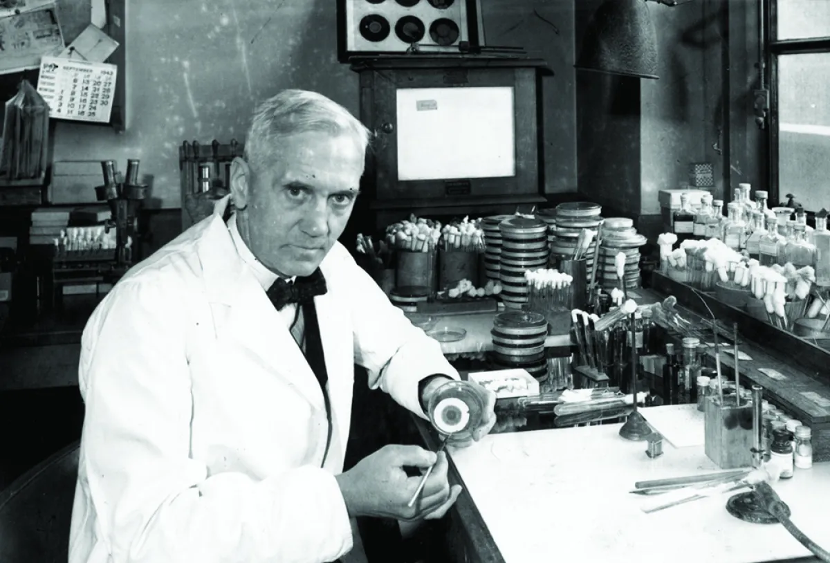 حدث غيَّر تاريخ العالم، وساعد الأطباء على علاج الأمراض البكتيريَّة، وذلك عندما نسي ألكسندر فليمنج أن ينظف الطبق الذي كان مليئاً ببكتيرياً المكورات العنقوديَّة باستثناء جزء منه كان ملوثاً بالعف، الذي قضى على جميع البكتيريا وعرف بعد ذلك باسم البنسلين. وقد نشر هذا الاكتشاف في عام 1929 وحقق طفرة في عالم الطب، وتم اختبار العقار على فئران التجارب ثم على الإنسان لاحقاً.