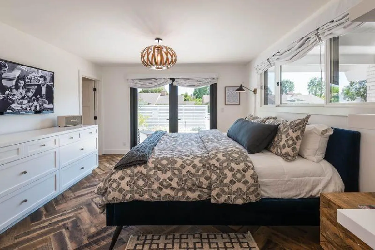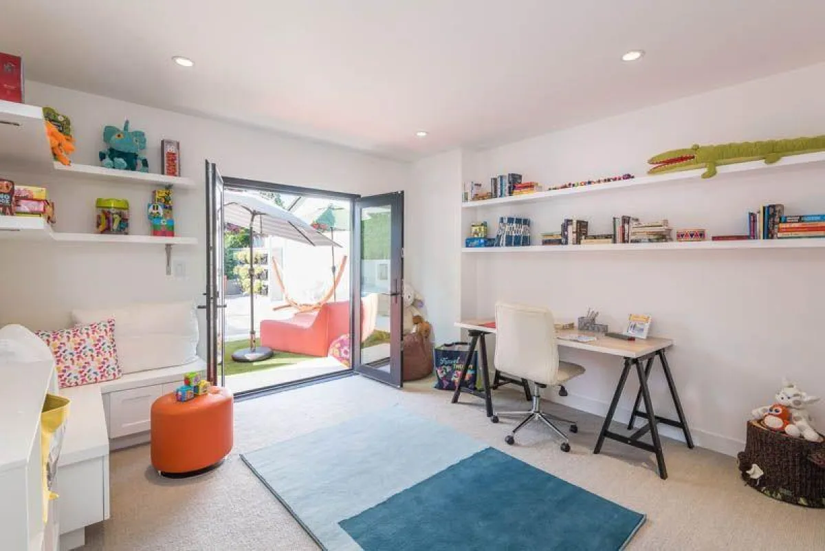 للألوان الترابية مكان في مكوّنات غرفة النوم الـ"نيو كلاسيكية"، فيما يتسلّل اللونان الأبيض والأزرق، من خلال بعض الـ"اكسسوارات". وقد اهتمّت النجمة بالجلسات الخارجيّة، التي تحوط حوض السباحة، فأثّثت تلك المسقوفة بأريكتين متقابلتين مشغولتين من الـ"ريزين" المقاوم للحرارة والبرودة.